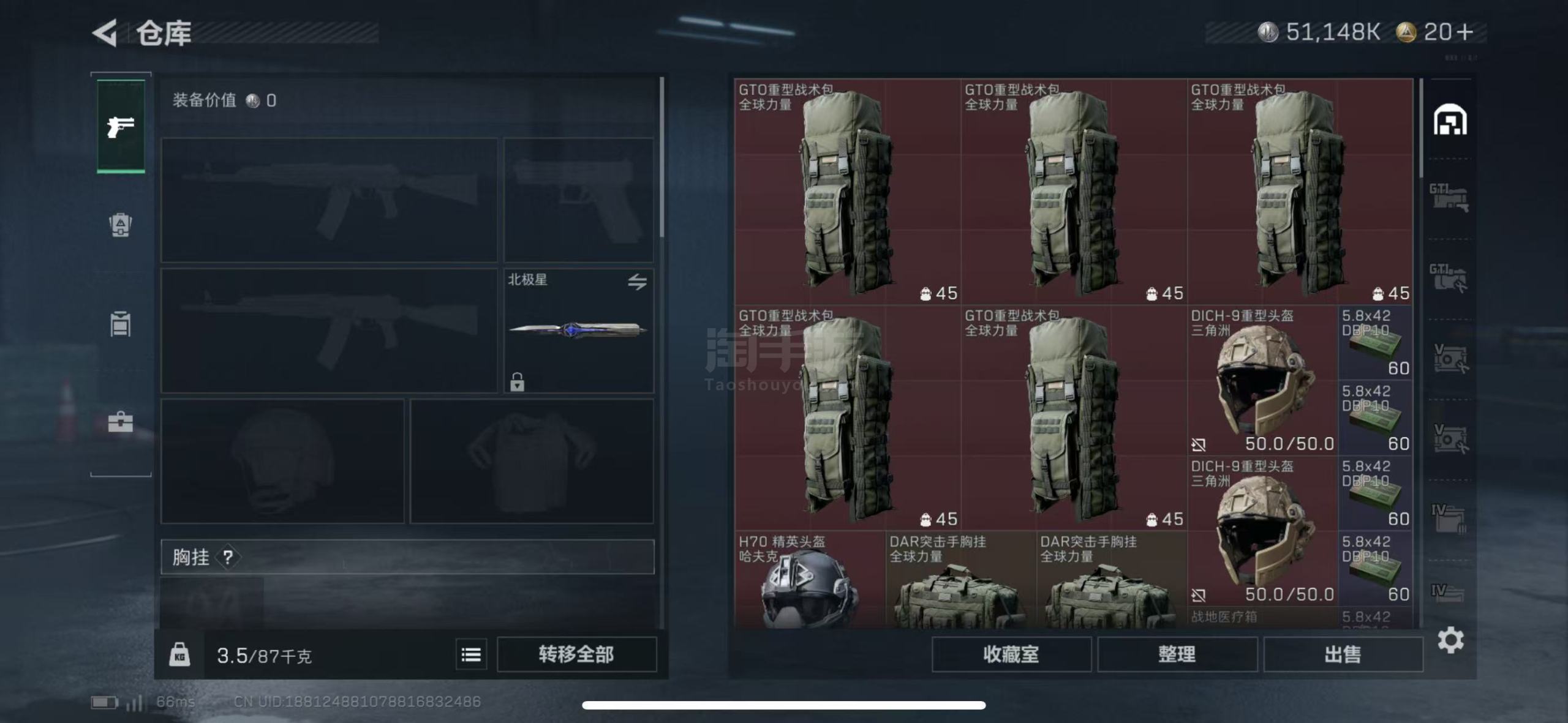 总资产193.02M,哈夫币 51148.3K,战场等级:22 军士长,行动等级:60 黑鹰,角色皮
