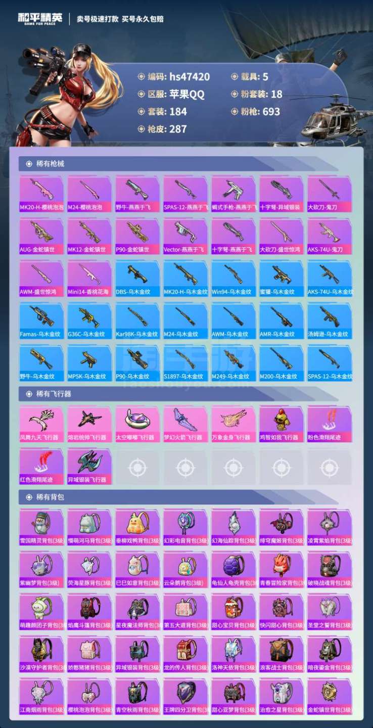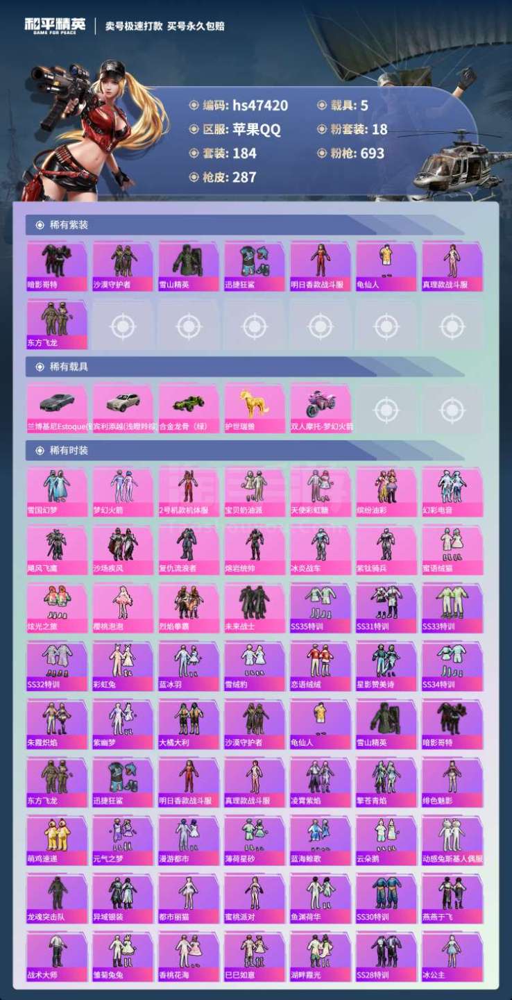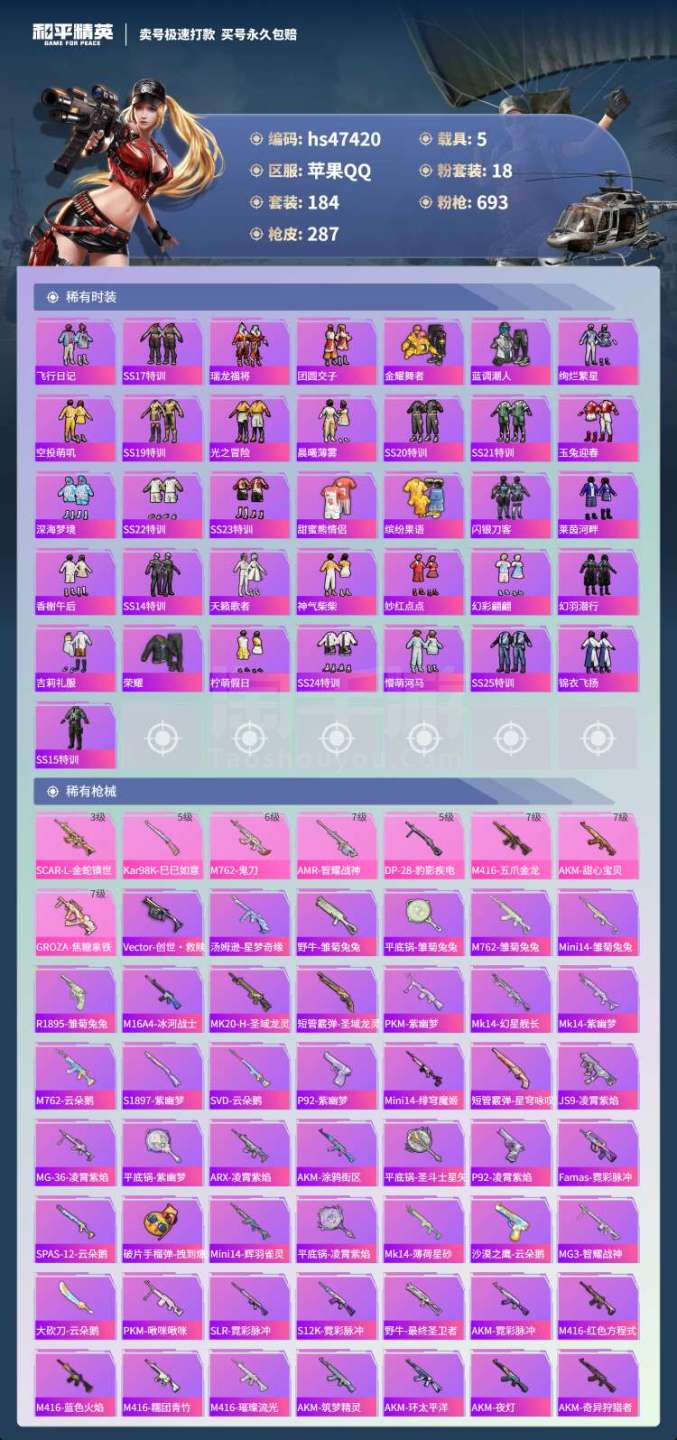 苹果Q-5载具18粉装8特效枪20热门197套装287枪皮 103594热力值 15印记 历史无敌战
