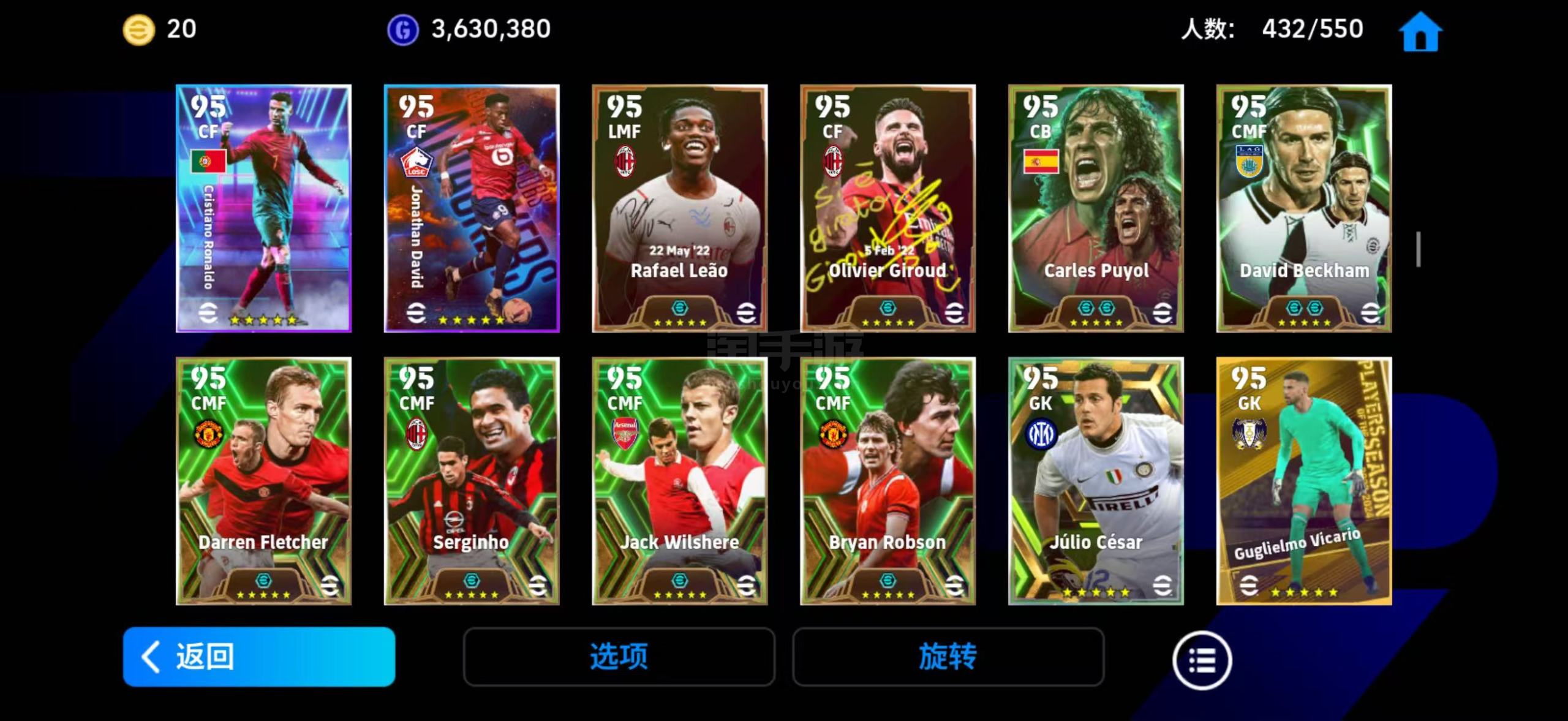 各种神兽看图,应有尽有,还有砸头球套拜仁米兰巴萨皇马法国套,还有十五连胜标和组别最高1020的排名