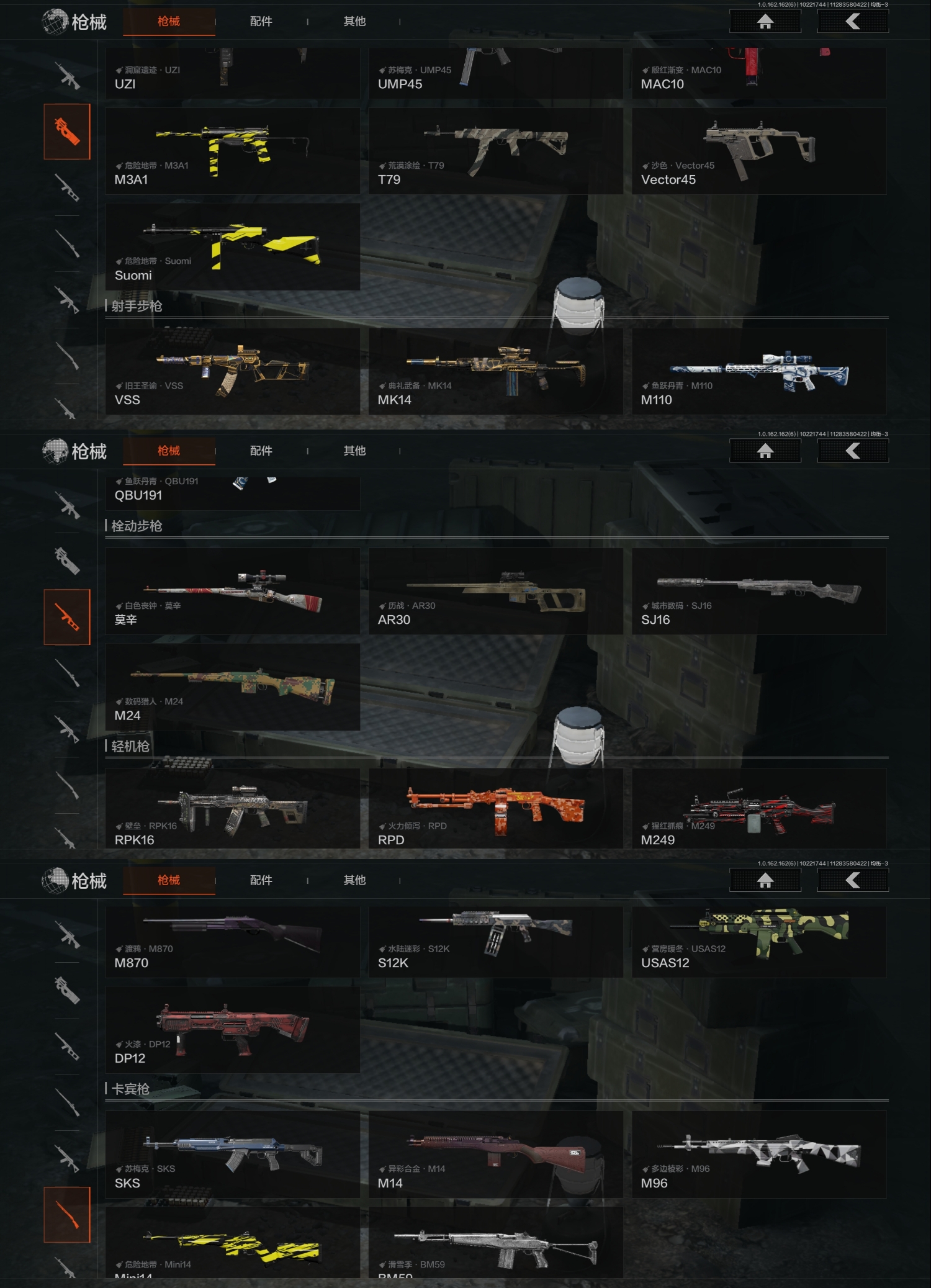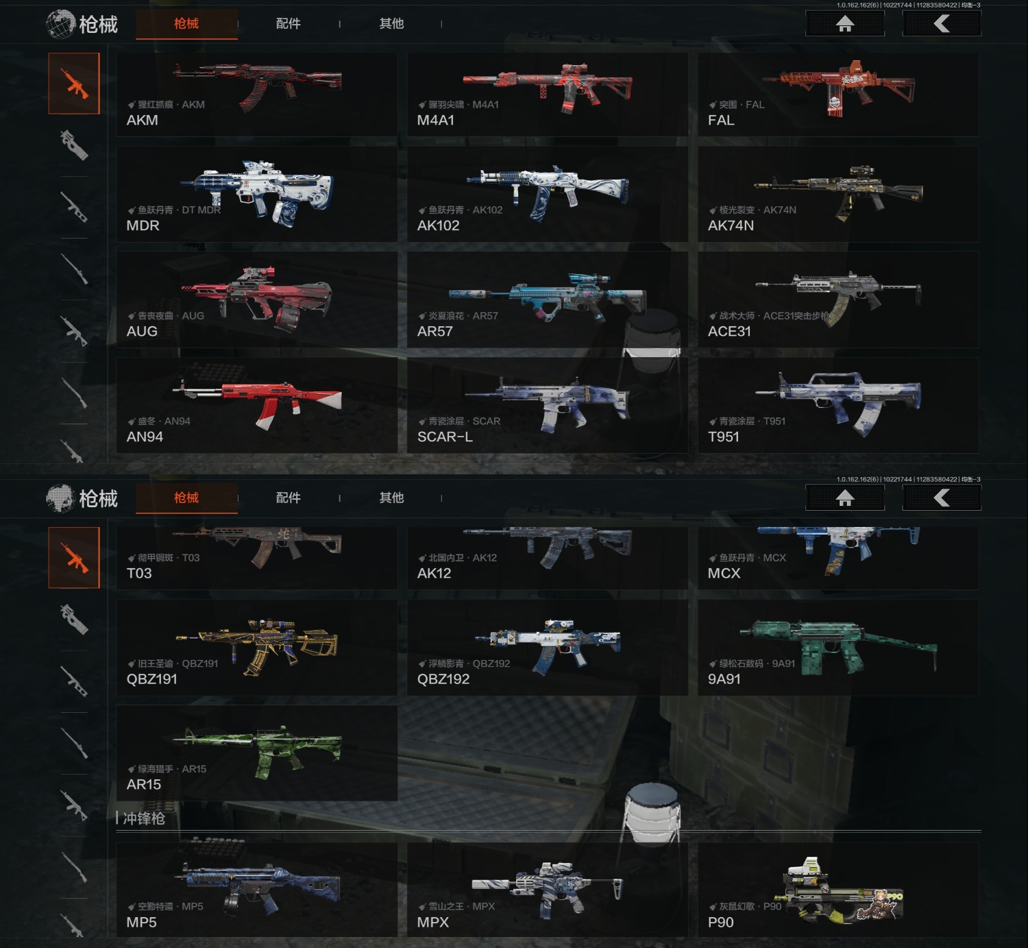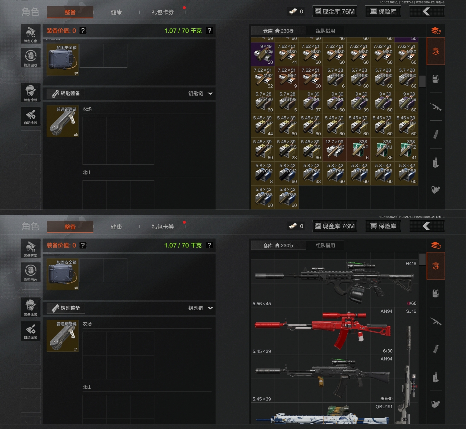 FY5645,总资产113.8m,近战武器:,急袭弯刀,盘牙·彻甲短刃,角色装扮(紫):,王国卫队礼装,都市夜影套装,金色枪皮:,告丧夜曲·AUG,旧王圣谕·QBZ191,旧王圣谕·VSS,浮麟影青·QBZ192,紫色枪皮:,鱼跃丹青·DT MDR,彻甲铜斑·TO3,白色丧钟·莫辛,壁垒·RPK16,典礼武备·MK14,鱼跃丹青·M110,手套:,急袭手套,大金:,机密文件,古董茶壶,安卓Q区实名