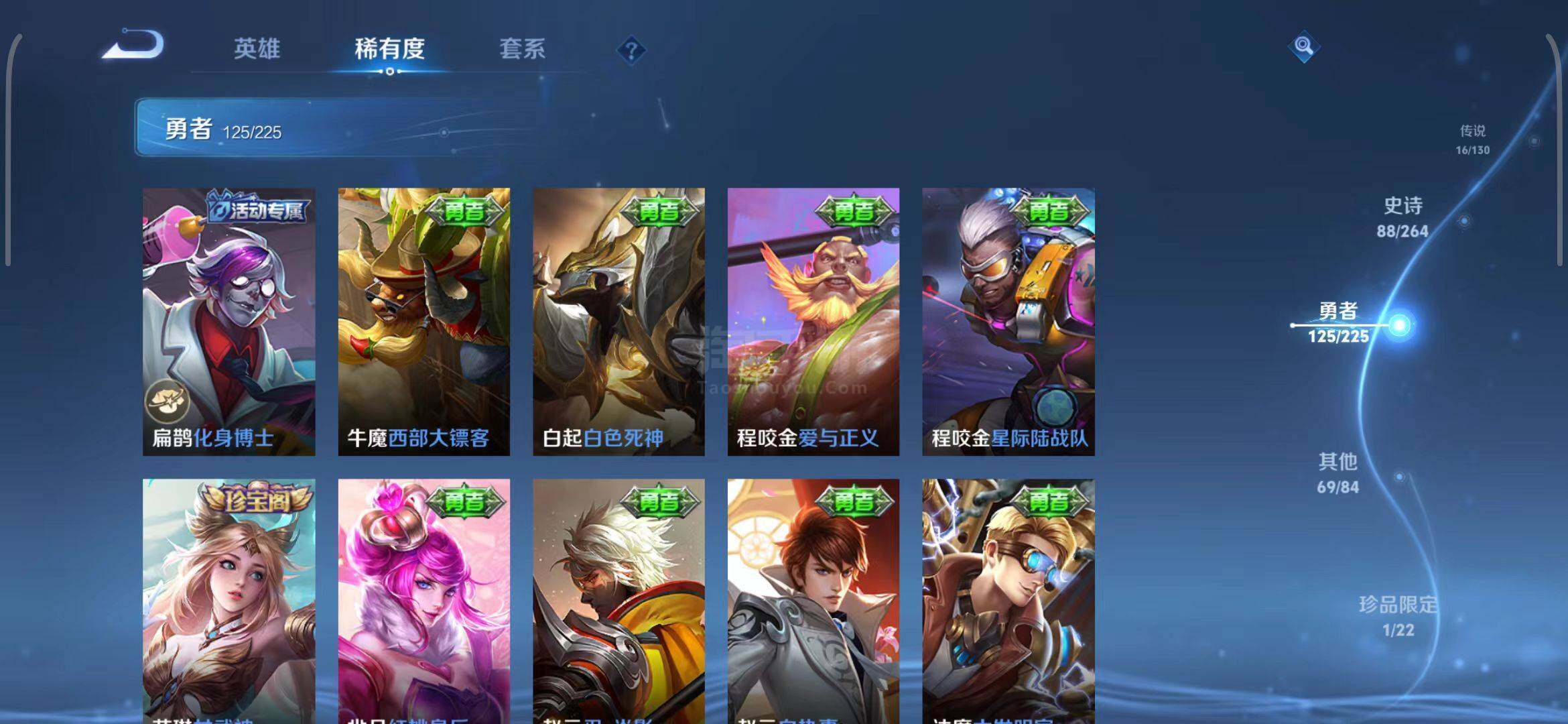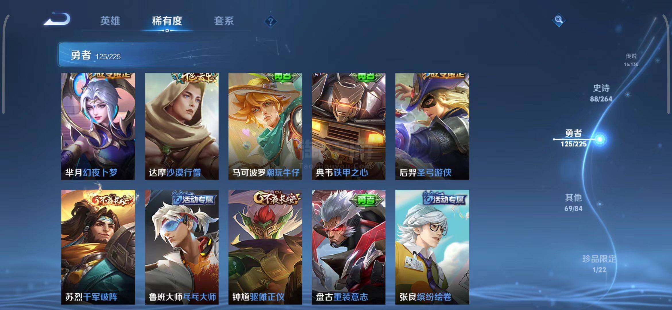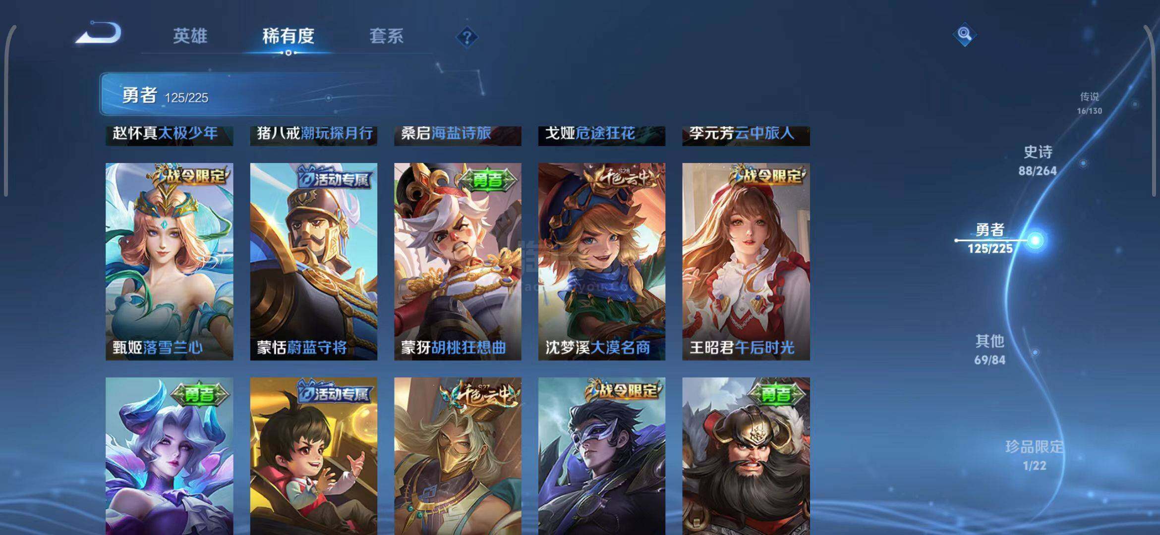 贵族8/皮肤300/典藏1/传说16/史诗88/英雄126/安卓Q-V1-至尊星耀III段位-126