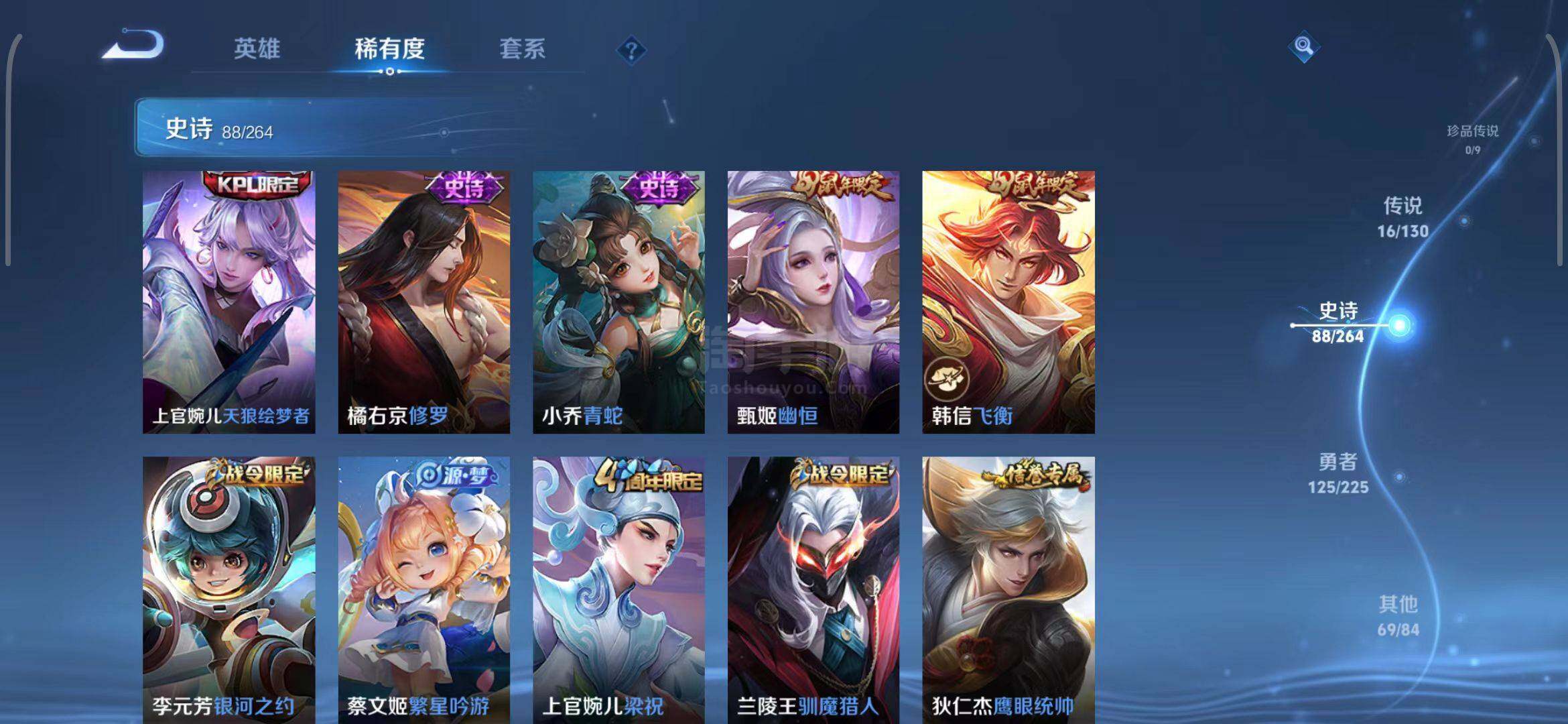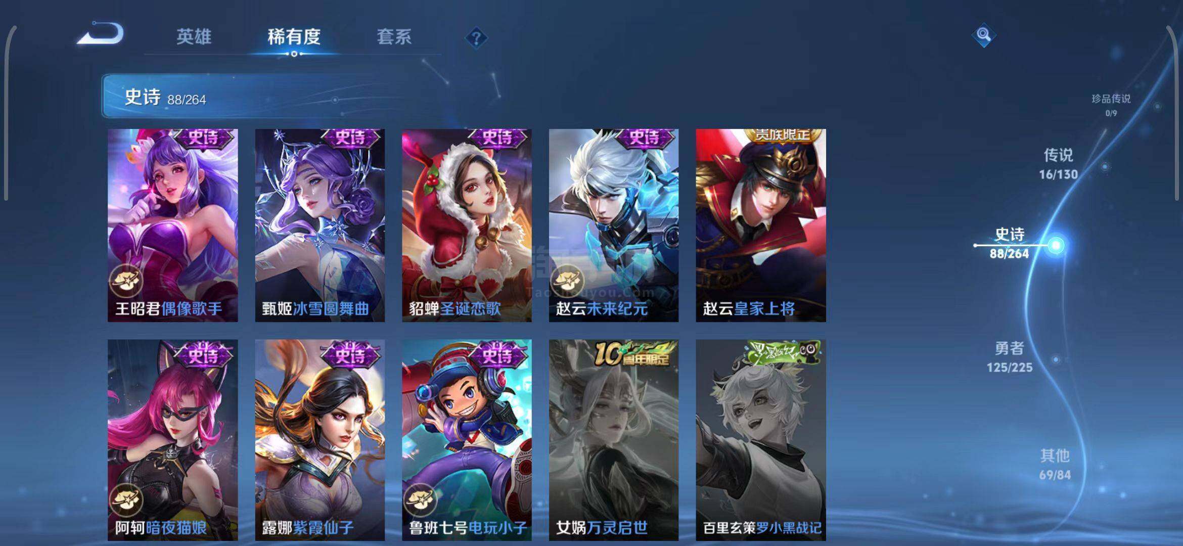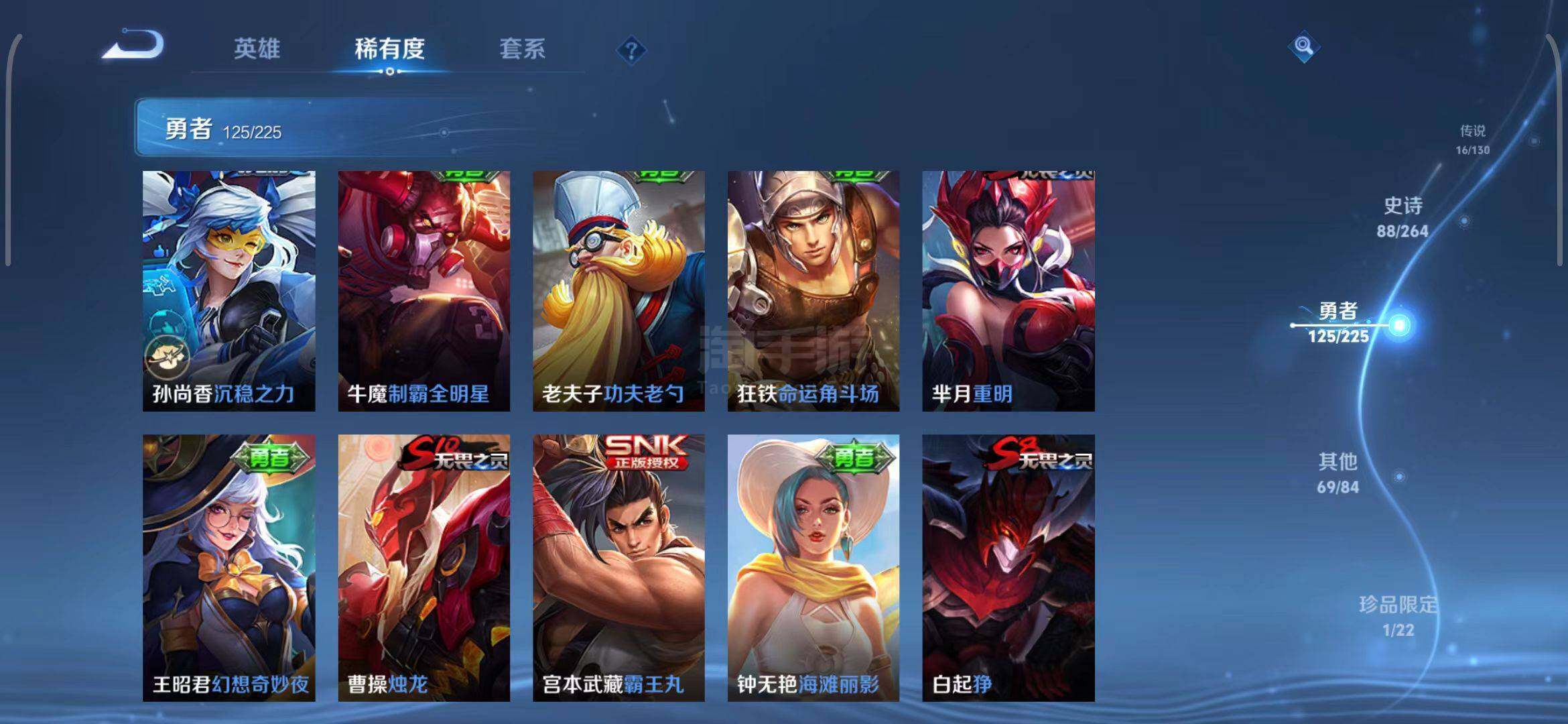 贵族8/皮肤300/典藏1/传说16/史诗88/英雄126/安卓Q-V1-至尊星耀III段位-126