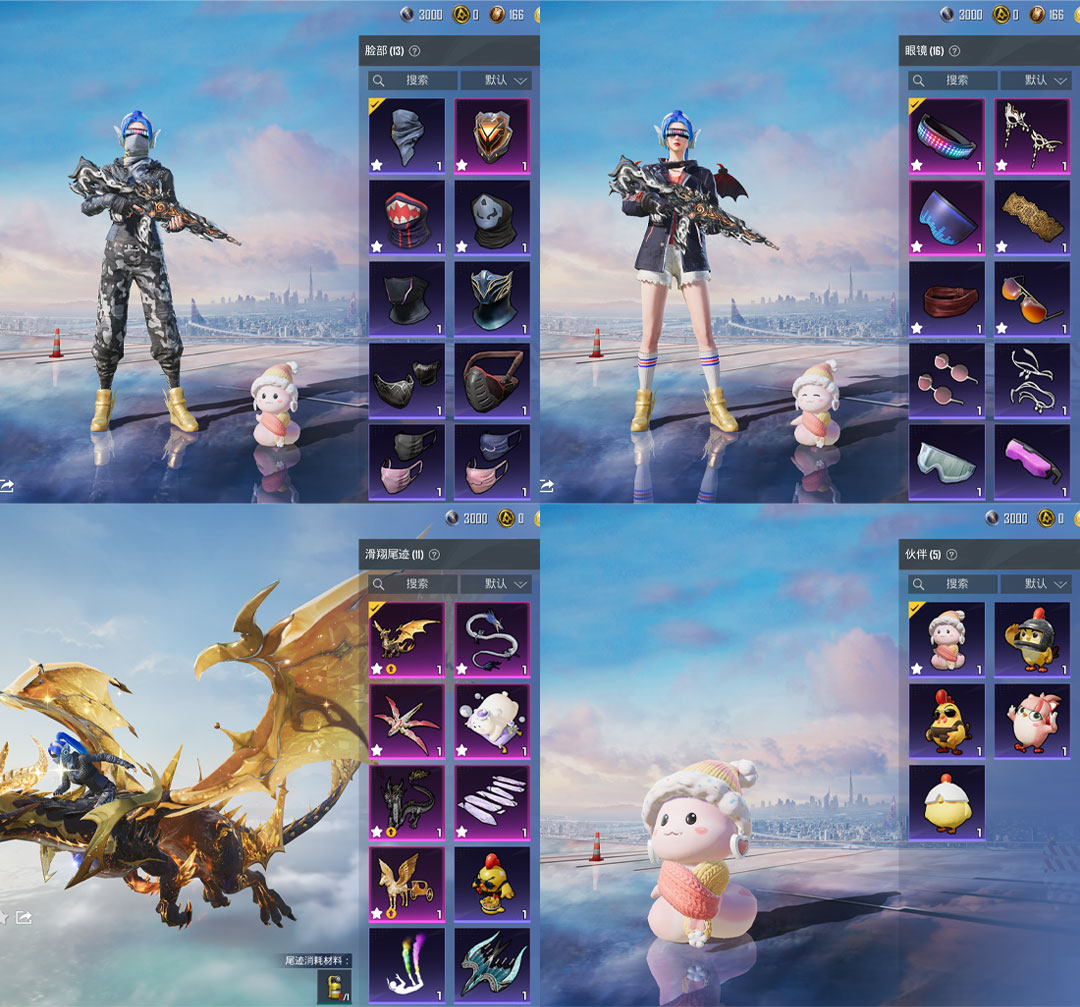 滑翔尾迹:龙翔九天飞行器/2级,沙丘之主天马/1级,镜域双华-灵镜之阶,圣域金龙/1级,灵珠游龙,,酣梦熊熊,祥瑞起舞,