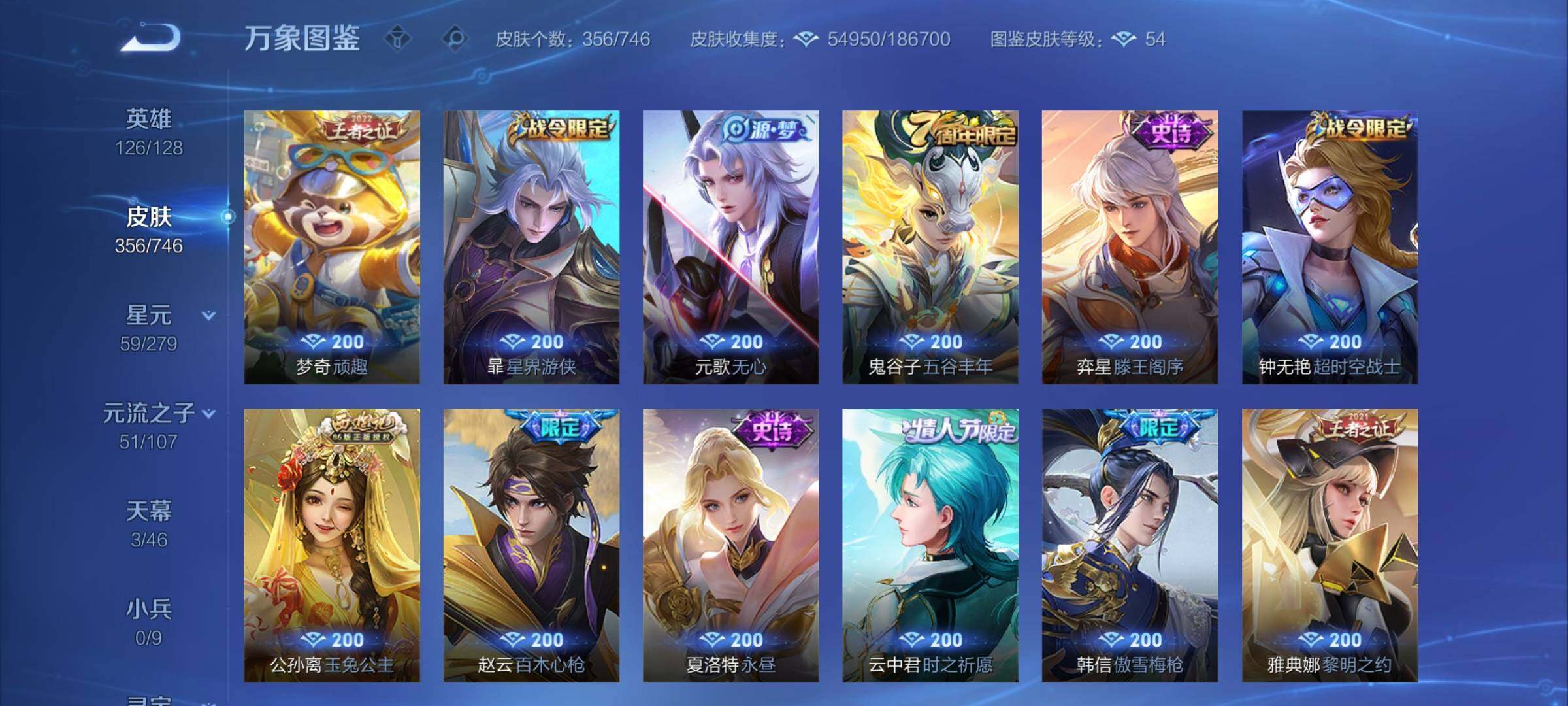 营地账号:7344036/可换绑【V9精品号 金标万战阿珂 金标蒙犽 貂蝉慕夏 孙悟空典藏 瑶无双 520孙策 李逍遥 祈雪灵祝 多传说限定号】 幸运值217 13按键,2星传说,1天幕,21王者印记,满级铭文,可二次CD13434,安卓Q-V9-355皮肤-1典藏-1珍品无双-1无双-1珍品传说-27传说-97史诗【英雄全皮】:猪八戒全皮,蒙恬全皮,夏洛特全皮【荣耀典藏】:孙悟空全息碎影【珍品