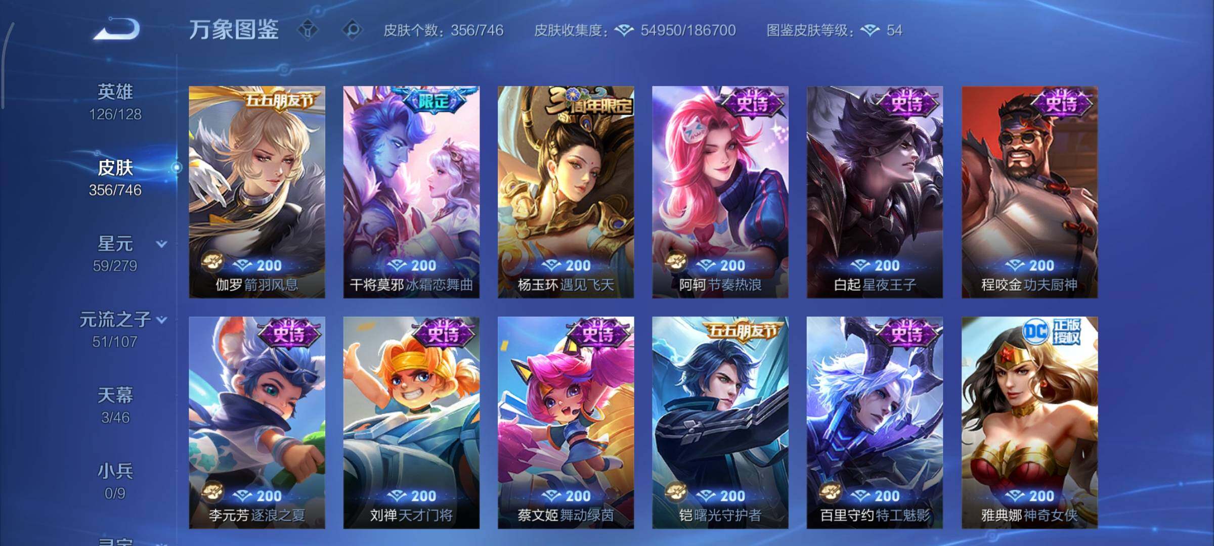 王者荣耀【安卓QQ】可换绑【V9精品号 金标万战阿珂 金标蒙犽 貂蝉慕夏 孙悟空典藏 瑶无双 52
