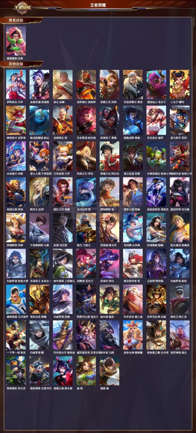 苹果QQ/无双王者/431皮肤/127英雄/5典藏/0珍品无双/1无双/0珍品传说/60传说/137