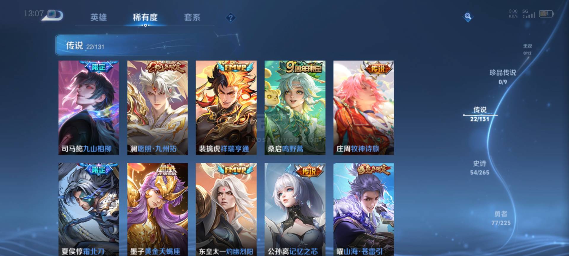 多款传说限定司马懿九山相柳韩信荣耀典藏夏侯惇霜北刀墨子圣斗士耀兔年限定澜 多个星元传说刘备宫本武藏