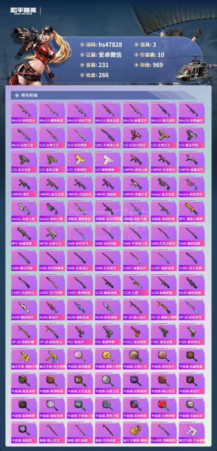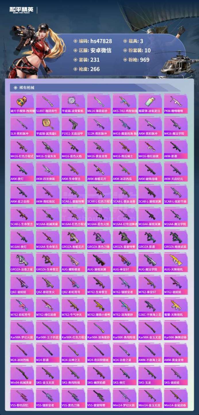hs47828 安卓微-15王牌印记-10粉装-5特效枪-3载具-91692热力值-231套装-2