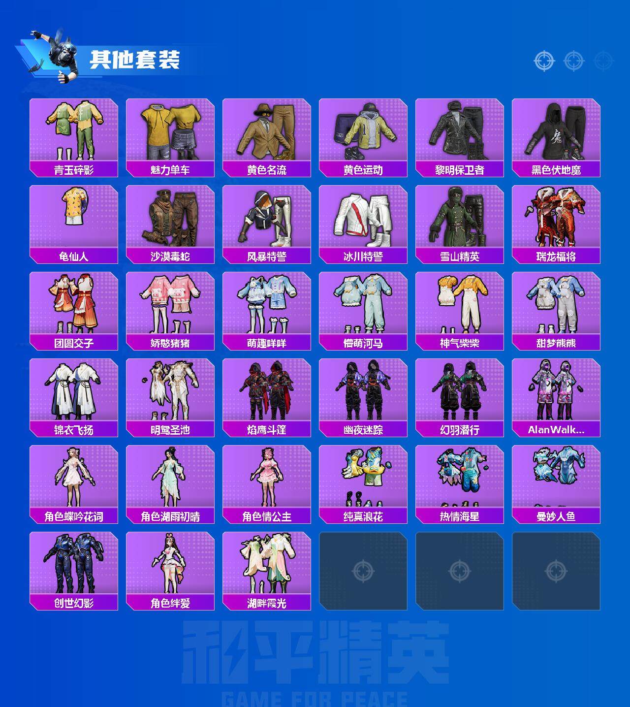 【粉色套装】:角色-绝色倾城,角色-烟云彩露,粉装-冠军兔兔,角色-月影灵韵,粉装