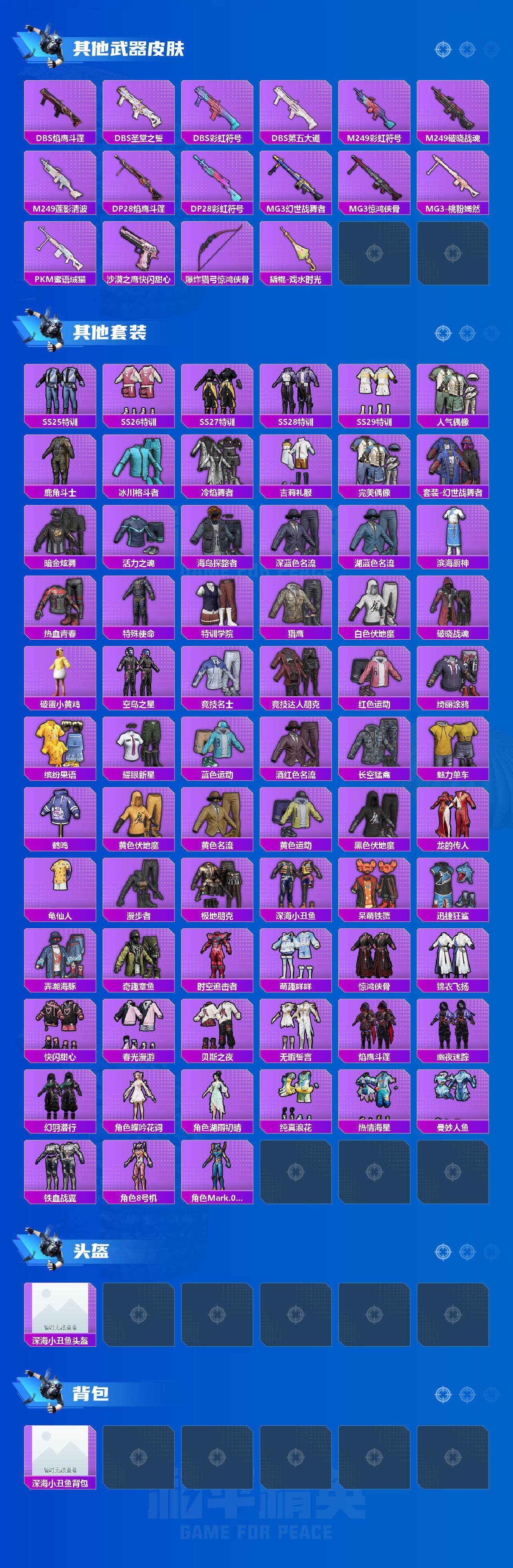 【热门品类】:套装-深海小丑鱼,套装-AG战队服,套装-龟仙人,角色-8号机,角色-Mark.06