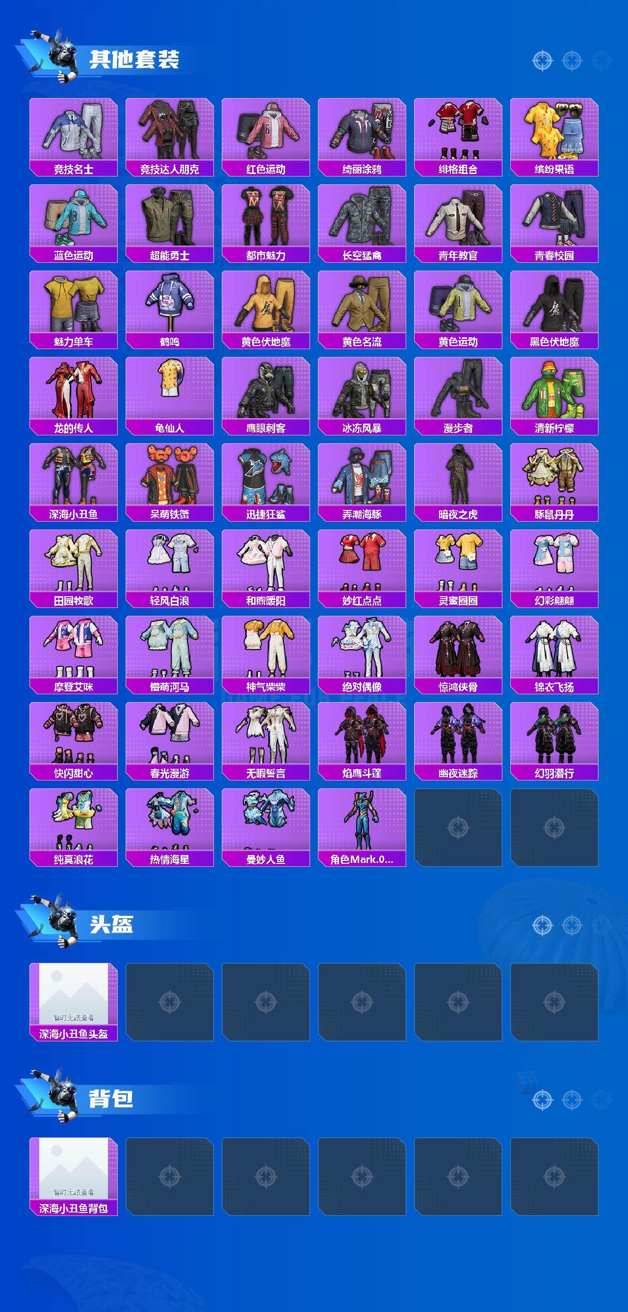 【热门品类】:套装-浪漫天命,套装-都市猎人,套装-派对舞王,套装-深海小丑鱼,套装-小丑鱼,套装-暗夜之虎,套装-龟仙人,套装-暗影哥特,角色-Mark.06