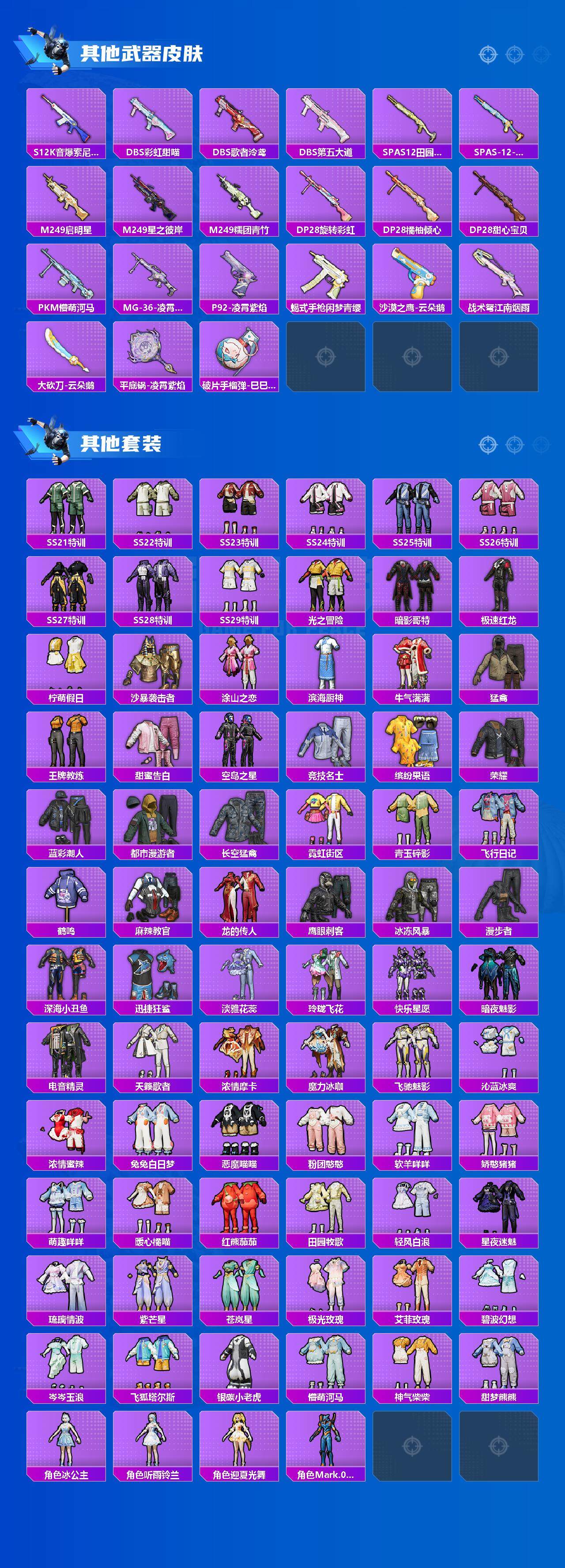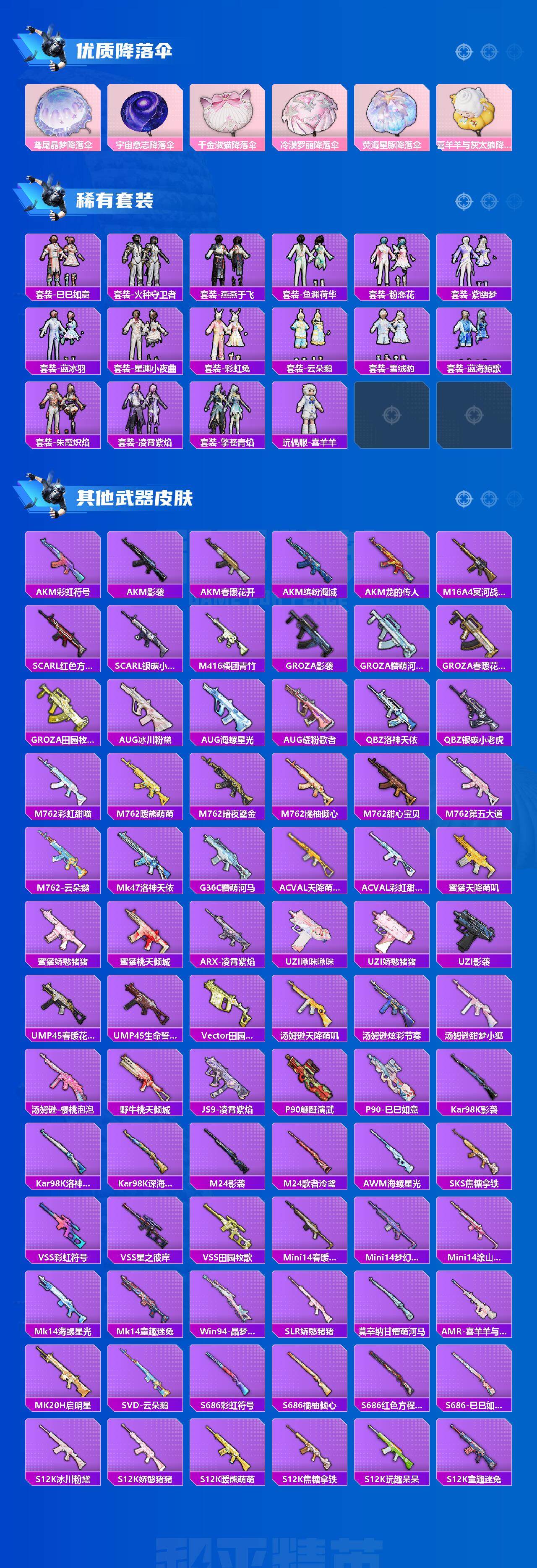 【1336】苹果 手Q-1神装-24粉装-11特效枪-4载具-4粉色飞行器-7