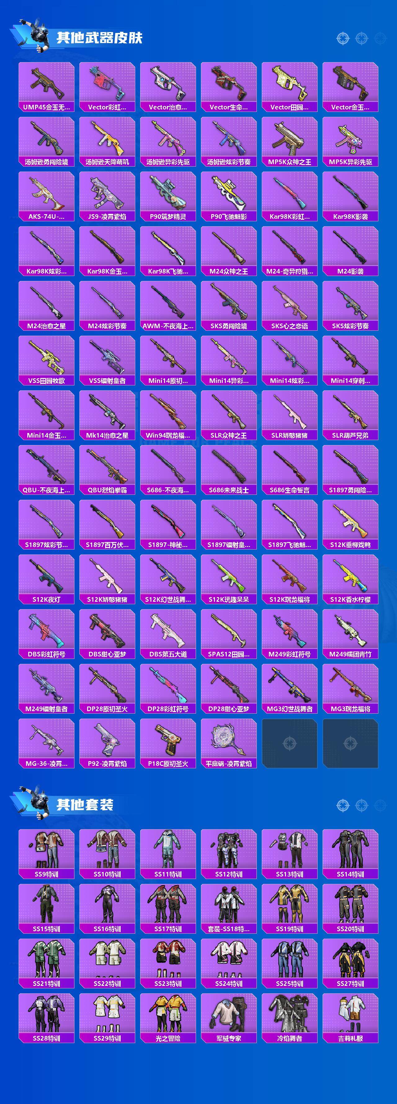 【粉色枪皮等级】:AKM-炫紫旋律(四级),M416-至情至圣(七级),Kar98K-巳巳如意(三级),DP-