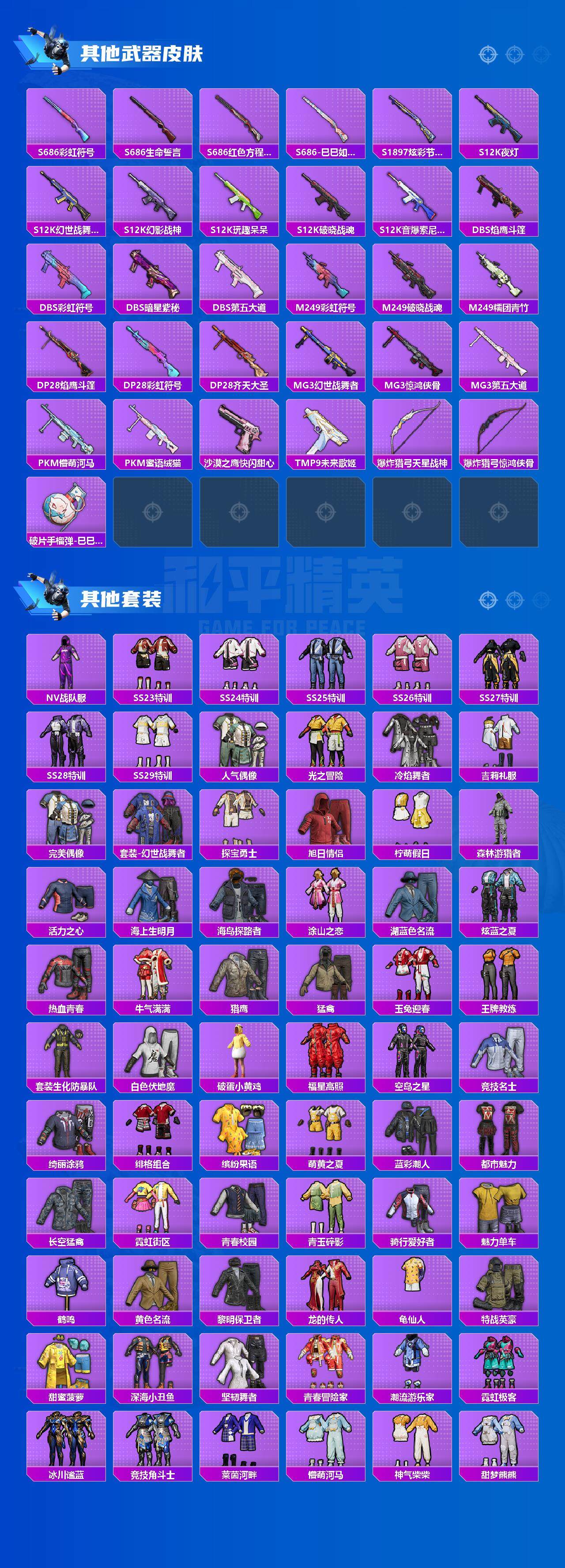 【粉色枪皮等级】:AKM-绿萝繁花(五级),蜜獾-荧海星豚(六级),UMP45-恐龙拽拽(七级),Kar98K-巳巳如意(五级),DP-