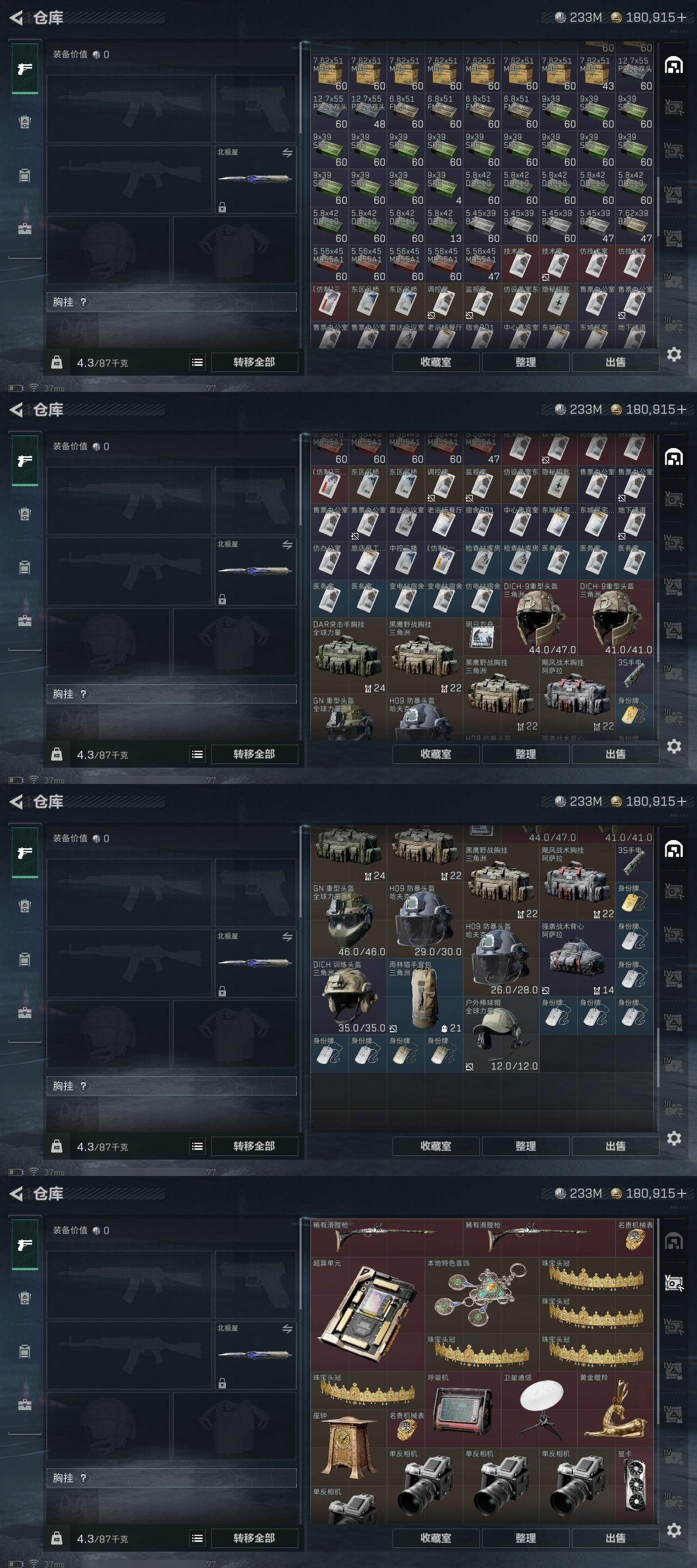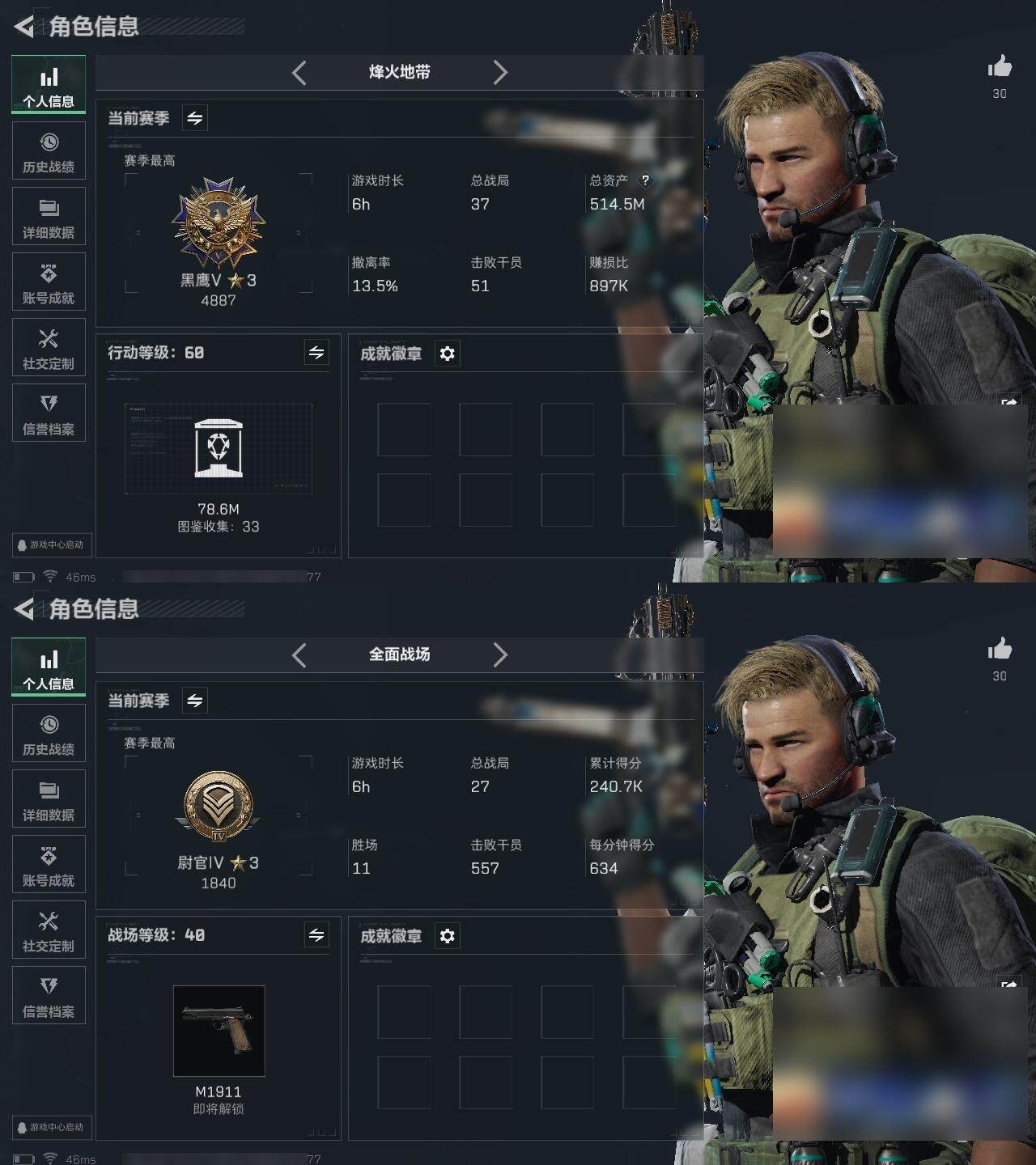 【955】总资产:514.5M, 哈夫币:233M ;总资产(M):514M/哈夫币(K):233000K/哈夫币(K):233000K/全面战场等级:40_段位:尉官/烽火地带等级:60_段位:黑鹰