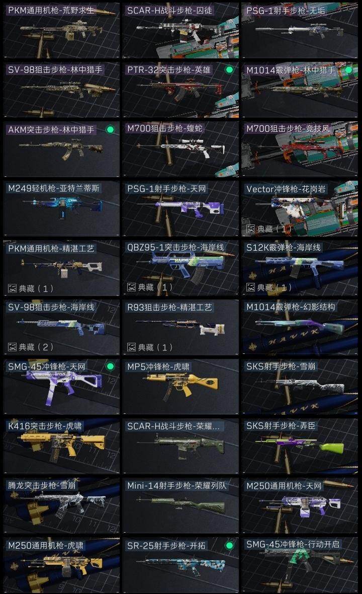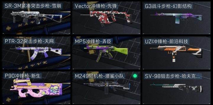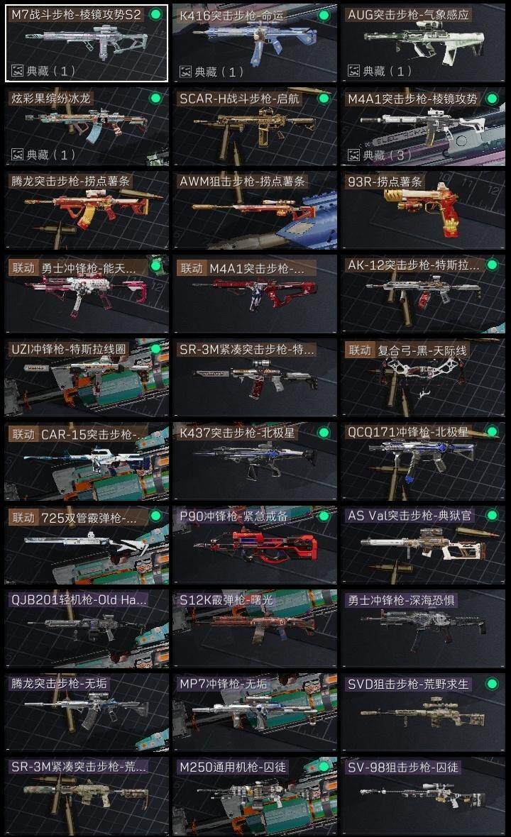 露娜-黑·天际线,蜂医-送葬人·无题密令,近战-北极星,近战-黑鹰,M4A1突击步枪-棱镜攻势,K416突击步枪-命运,AUG突击步枪-气象感应,腾龙突击步枪-气象感应,M7战斗步枪-棱镜攻势S2