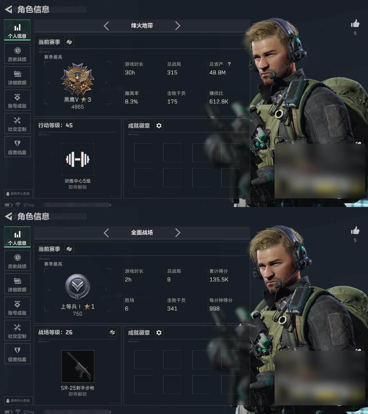 【966】总资产:48.8M, 哈夫币:1651K ;总资产(M):48M/哈夫币(K):1651K/哈夫币(K):1651K/全面战场等级:26_段位:上等兵/烽火地带等级:45_段位:黑鹰
