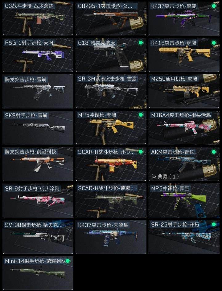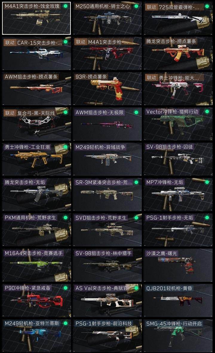 红狼-蚀金玫瑰,蜂医-送葬人·无题密令,近战-黑鹰,AKM突击步枪-青纹,M4A1突击步枪-蚀金玫瑰,M4A1突击步枪-阿米娅,CAR-15突击步枪-阿米娅,腾龙突击步枪-捞点薯条,725双管霰弹枪-送葬