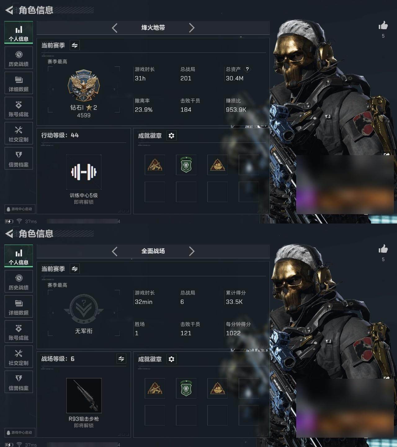 【976】总资产:30.4M, 哈夫币:177779 ;总资产(M):30M/哈夫币(K):177K/哈夫币(K):177K/全面战场等级:6_段位:无段位/烽火地带等级:44_段位:钻石