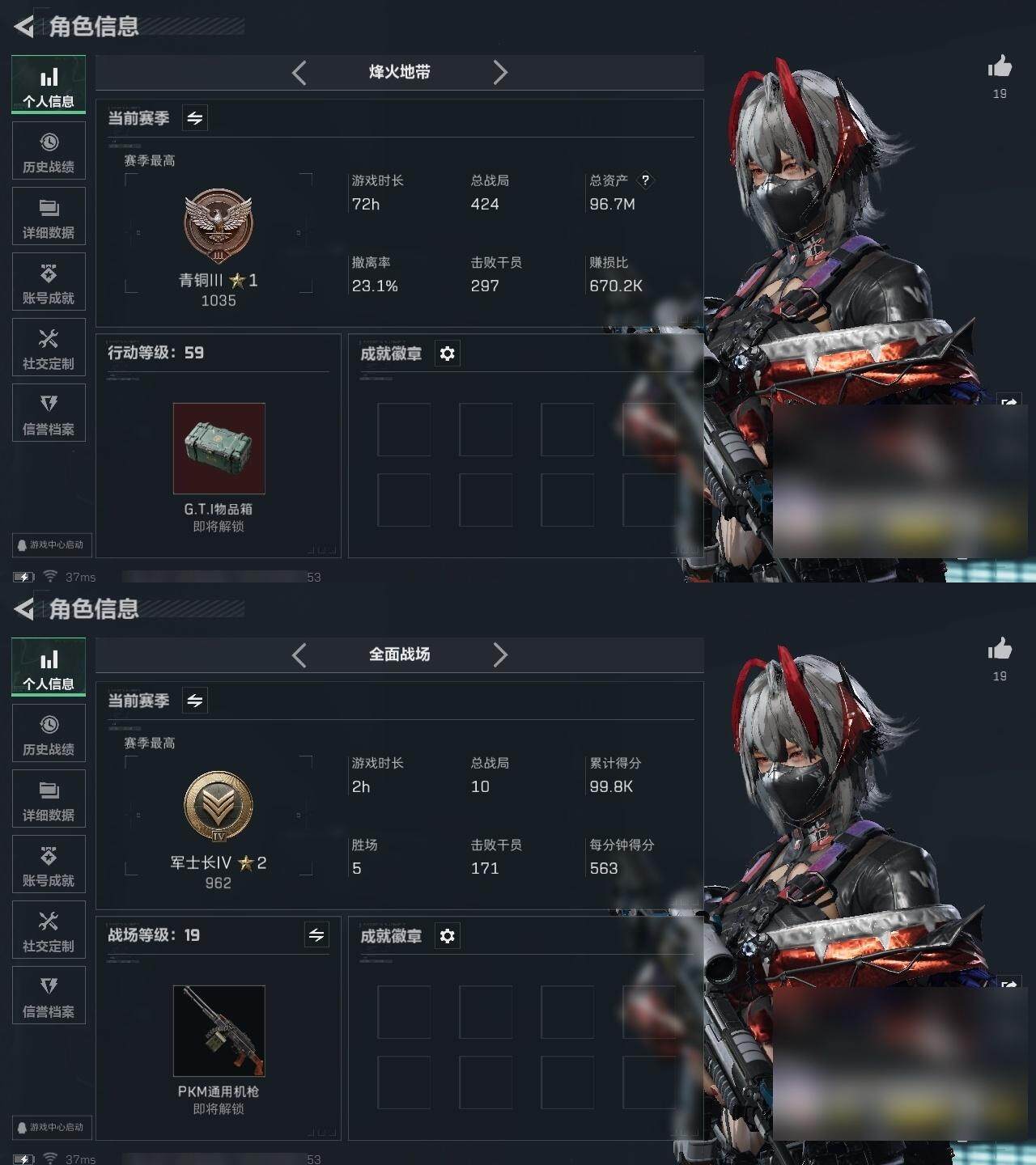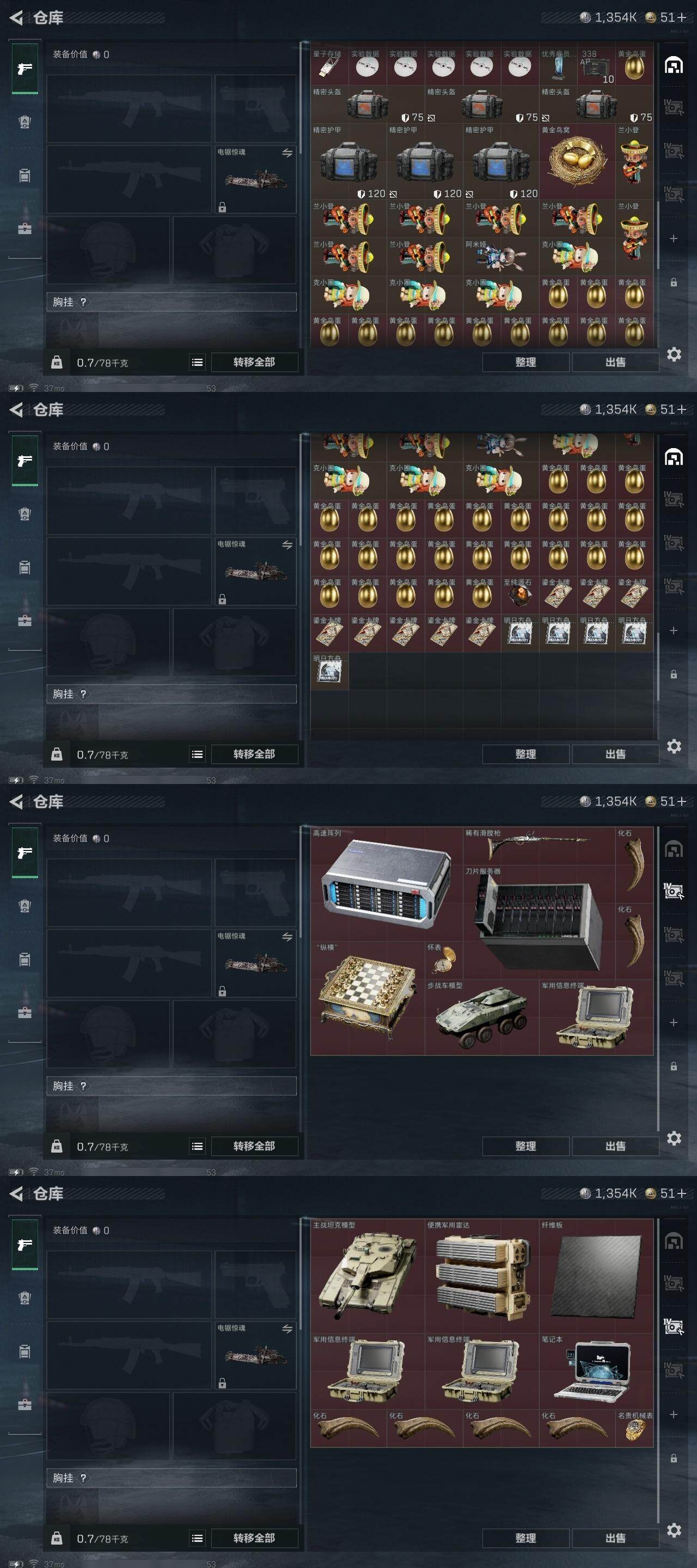 【1018】总资产:96.7M, 哈夫币:1354K ;总资产(M):96M/哈夫币(K):1354K/哈夫币(K):1354K/全面战场等级:19_段位:军士长/烽火地带等级:59_段位:青铜