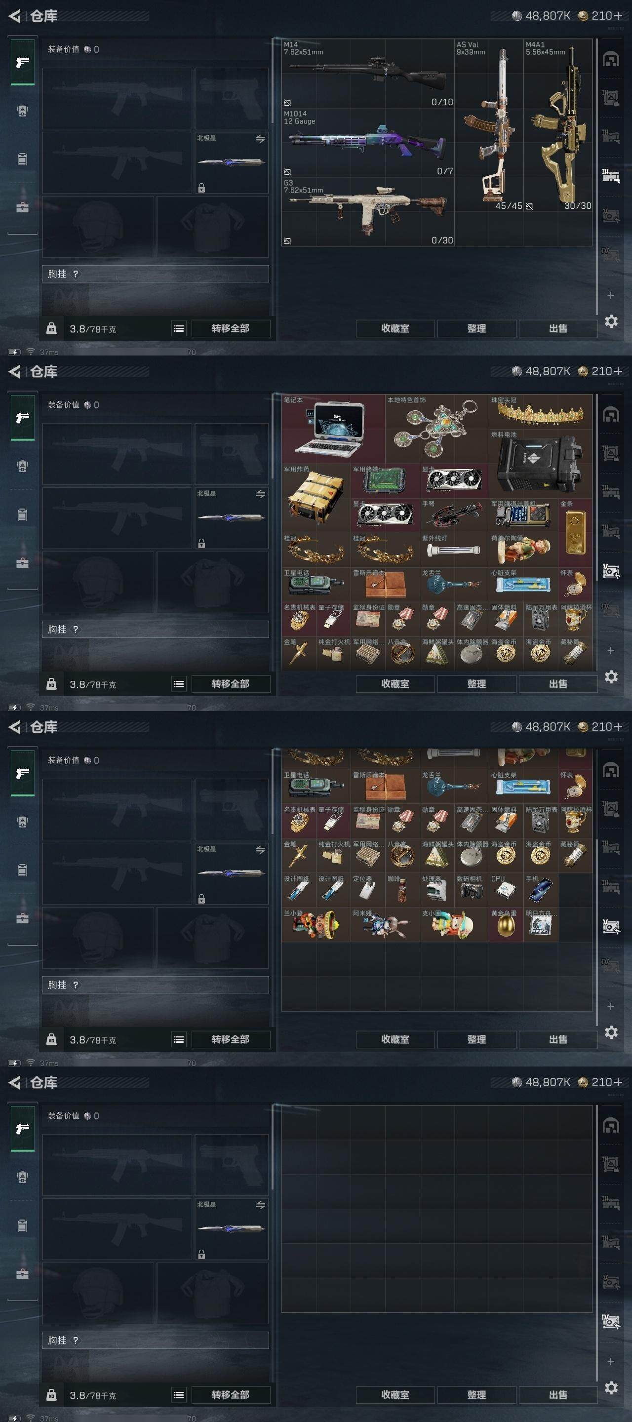 【1031】总资产:138.2M, 哈夫币:48807K ;总资产(M):138M/哈夫币(K):48807K/哈夫币(K):48807K/全面战场等级:27_段位:军士长/烽火地带等级:55_段位:铂金
