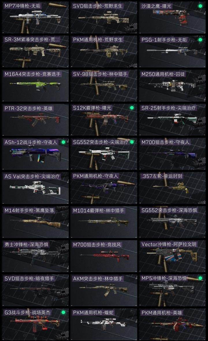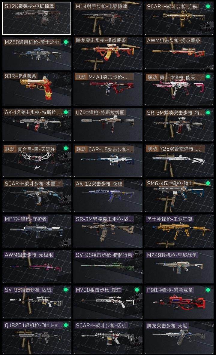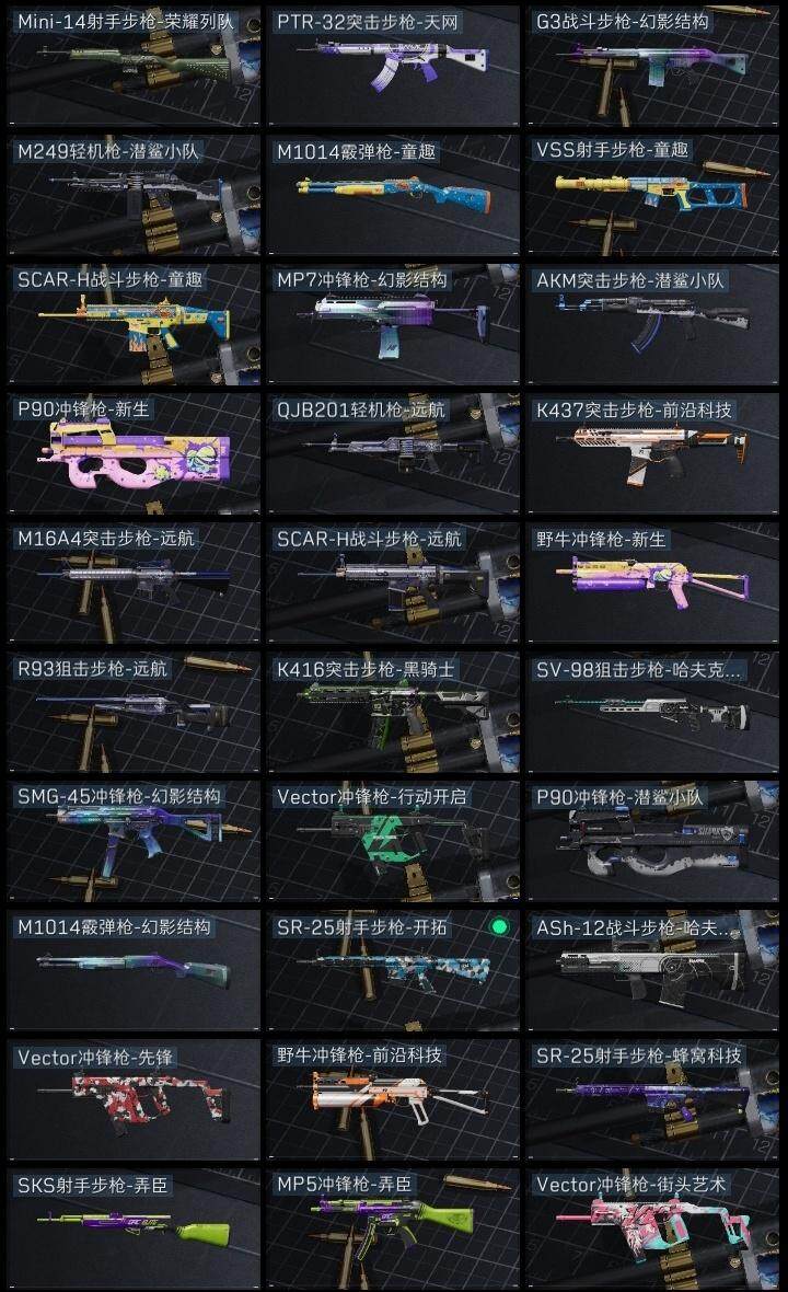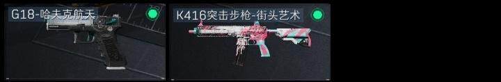 骇爪-水墨云图,露娜-黑·天际线,蜂医-送葬人·无题密令,无名-夜鹰,近战-黑鹰,QBZ95-1突击步枪-花岗岩,M14射手步枪-花岗岩,M4A1突击步枪-阿米娅,AK-12突击步枪-夜鹰,AK-1