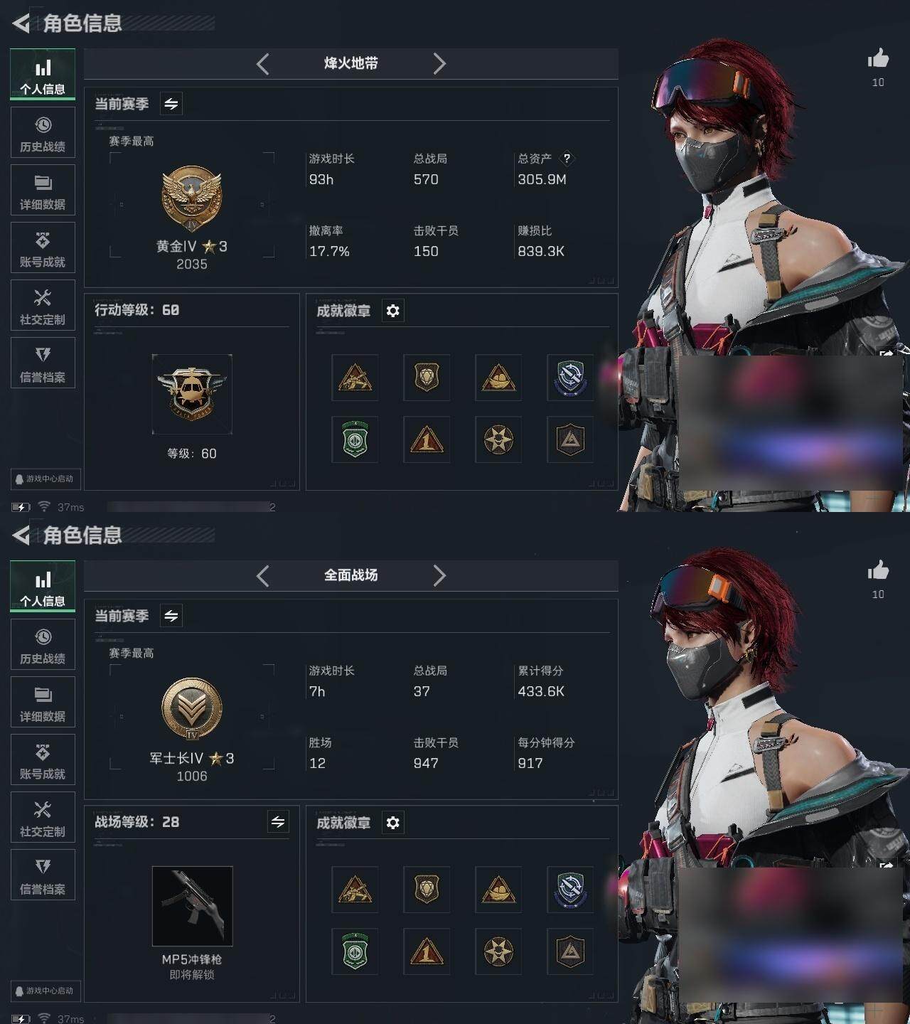 【1076】总资产:305.9M, 哈夫币:126M ;总资产(M):305M/哈夫币(K):126000K/哈夫币(K):126000K/全面战场等级:28_段位:军士长/烽火地带等级:60_段位:黄金