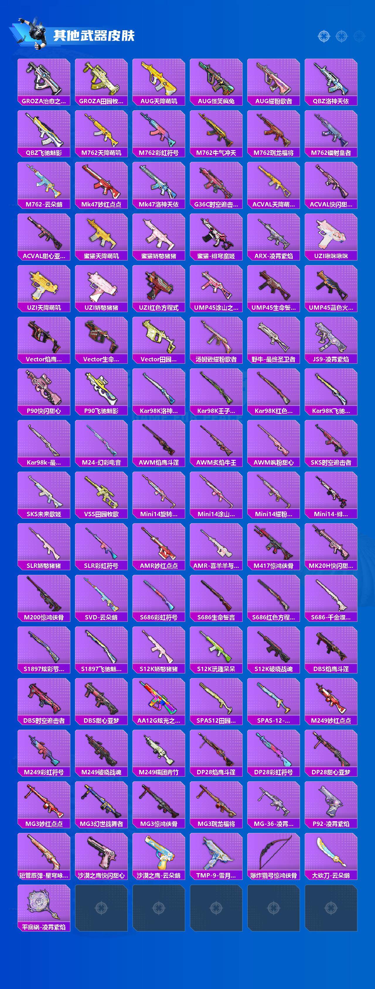 【mhlm1558】安卓 手Q-1神装-4粉装-7特效枪-2载具-2粉色飞行器-58747热力值-4王牌印记-107套装-205枪皮