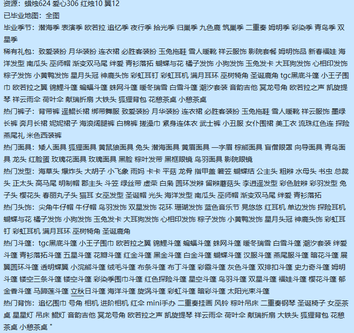 稀有礼包:致爱装扮 月华装扮 连衣裙 必胜客装扮 玉兔拖鞋 雪人暖靴 祥云服饰