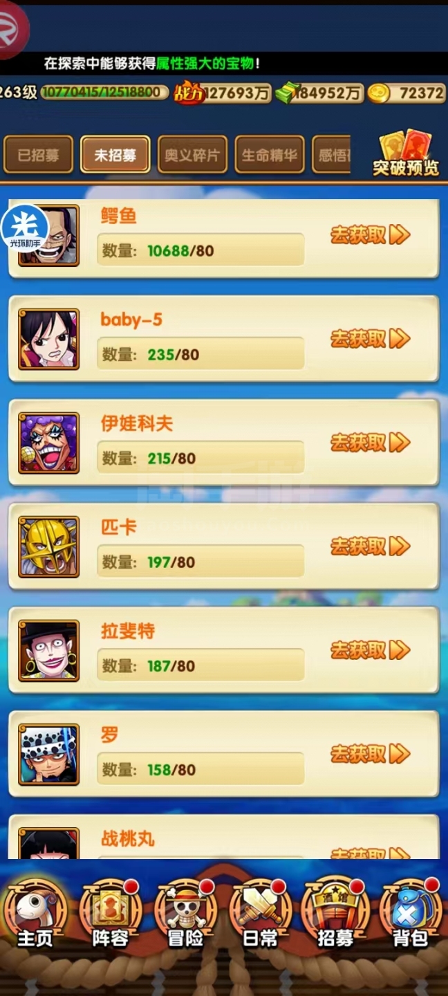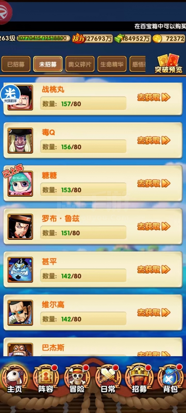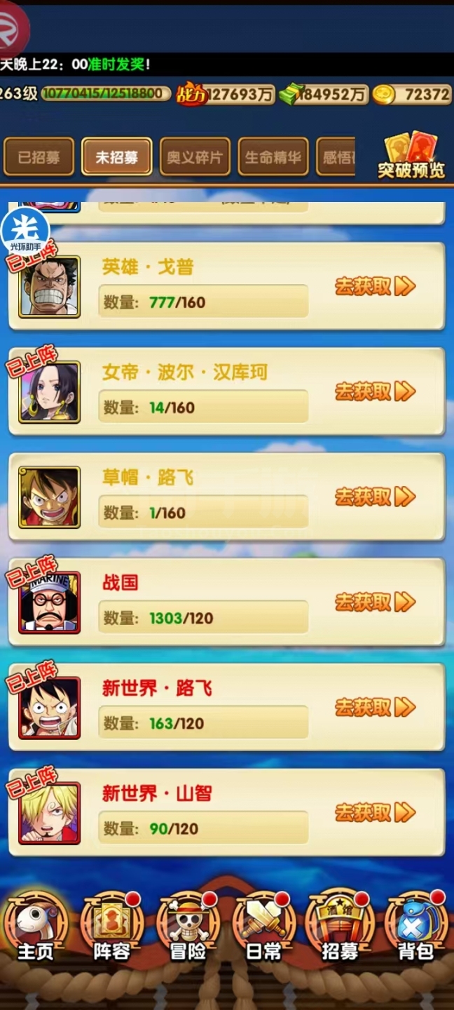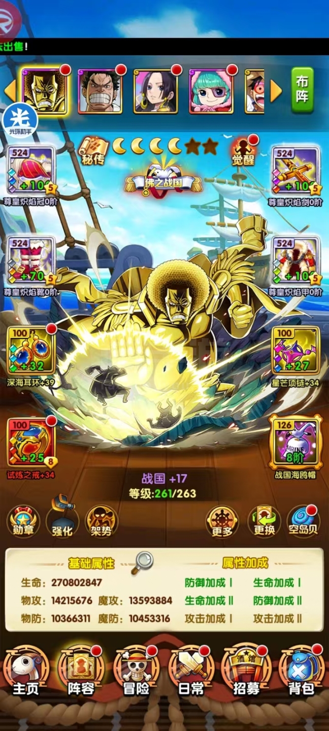 航海王强者之路【安卓其他】瑞游账号,13亿战力,资源多多,有贵皮肤,称号多