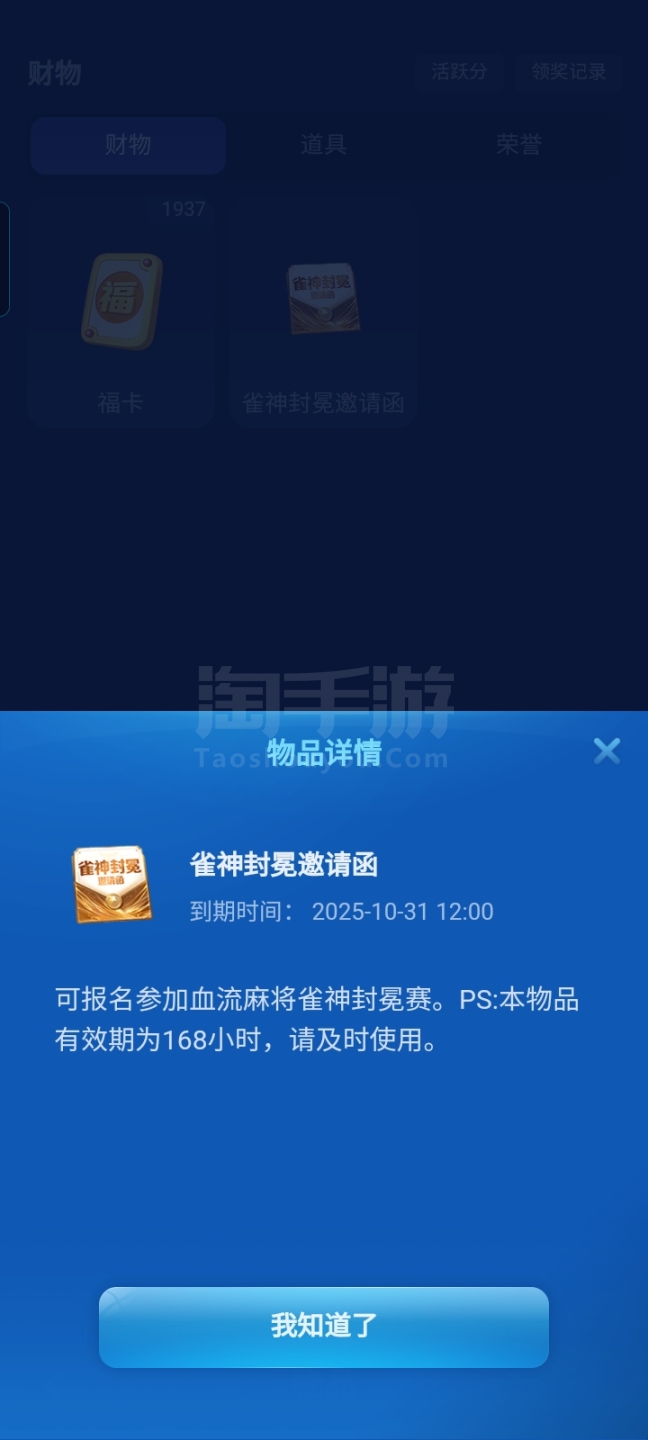 本人使用,会员vip6,有雀神封冕门票