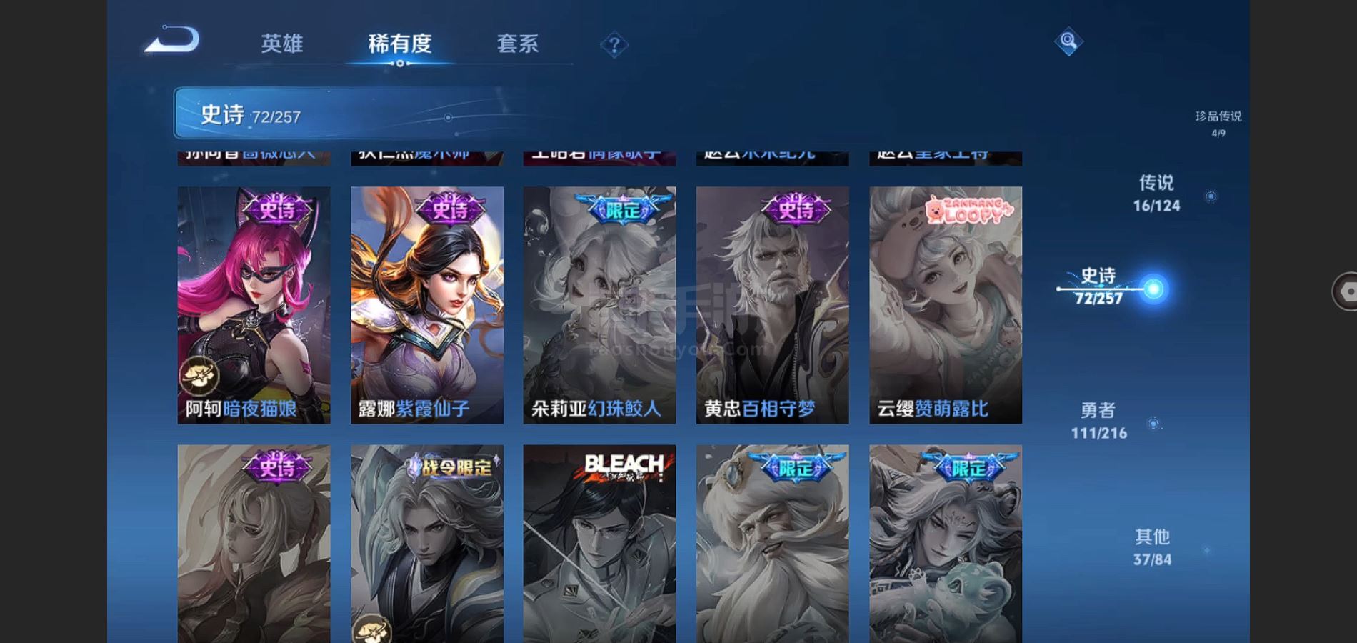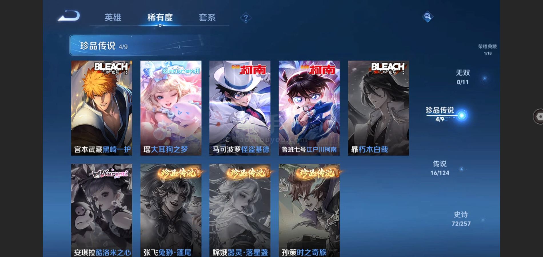 241皮肤-1典藏 4珍品 16传说 3星传说 幽冥火 金色仲夏夜 破晓神光 4珍品 黑崎一护 大耳