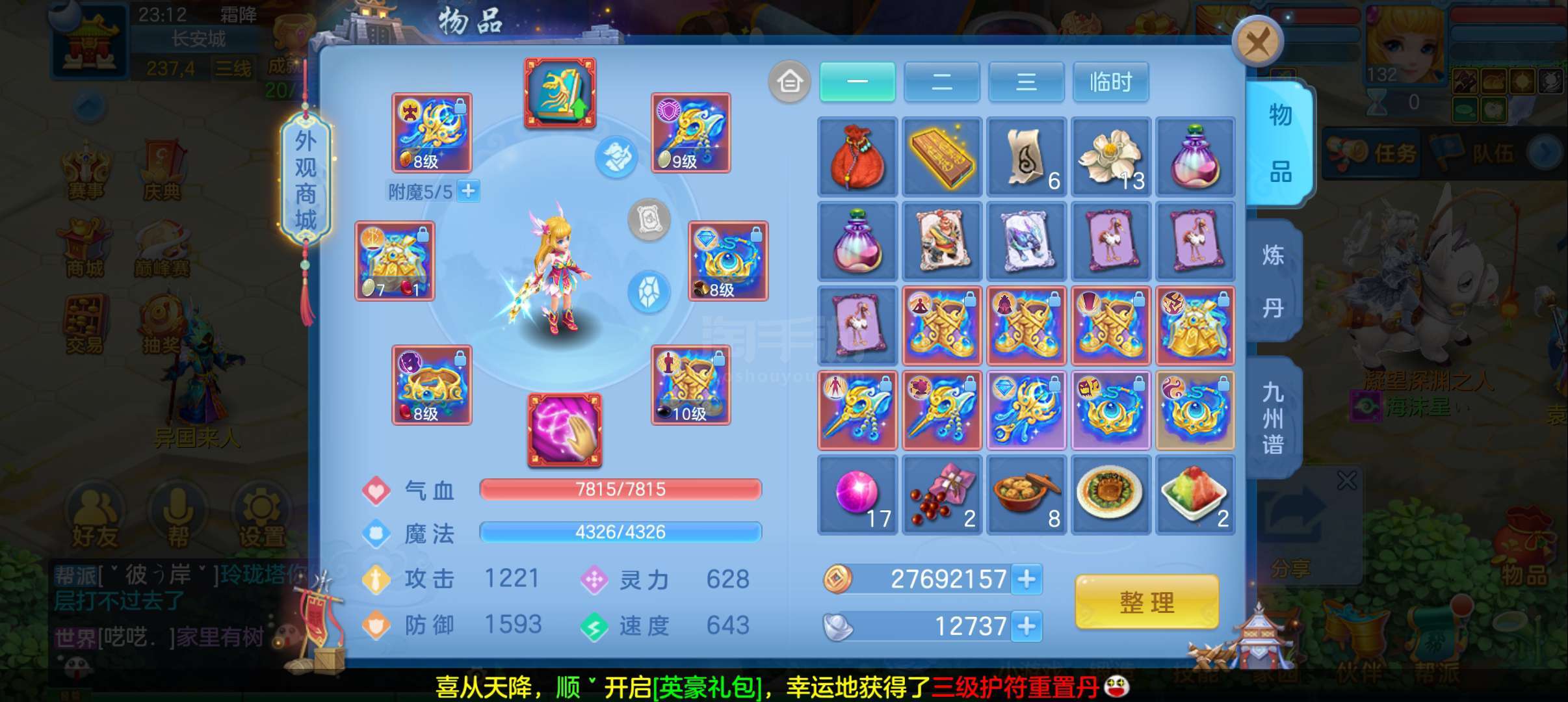 幻唐志:逍遥外传(神武4)【安卓官方】平民玩家,有高级坐骑。南海普陀,该有特技都有。关联180天。双重。