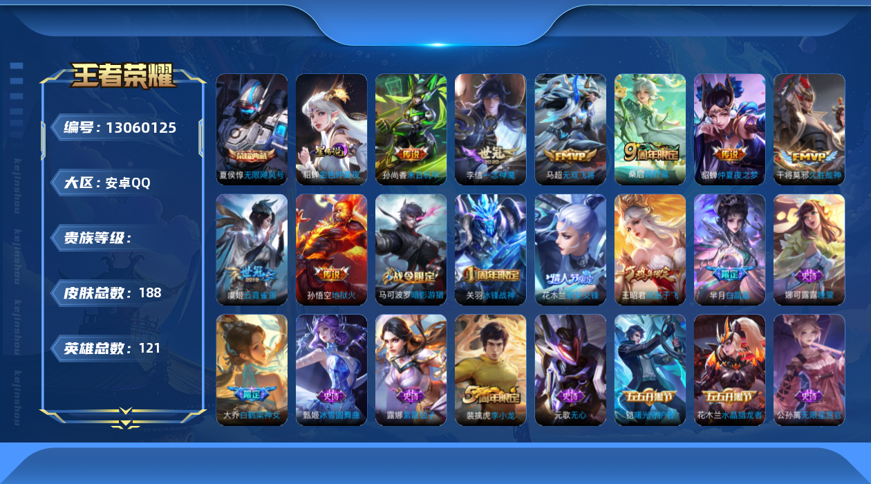 【13060125】[13060125]实名: 可修改 英雄数: 121 皮肤