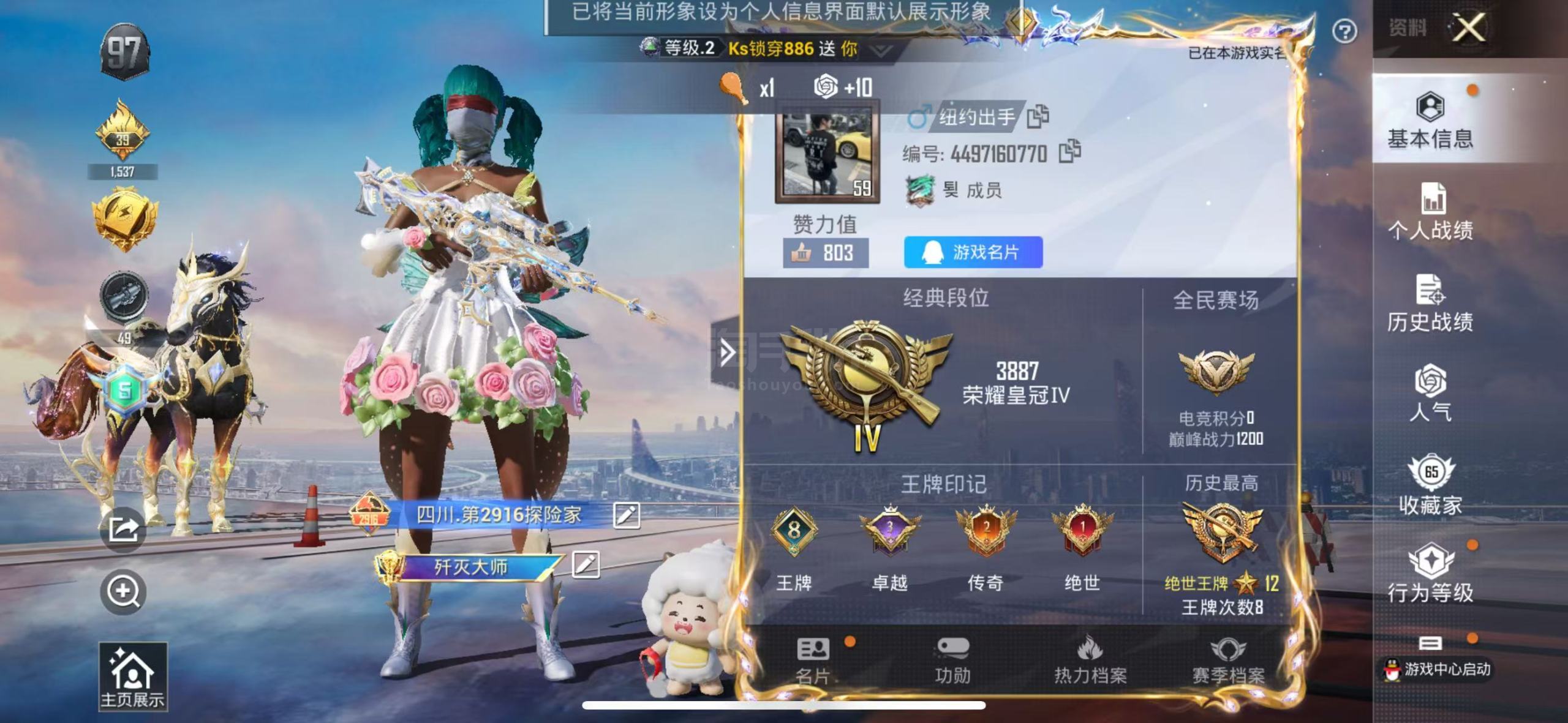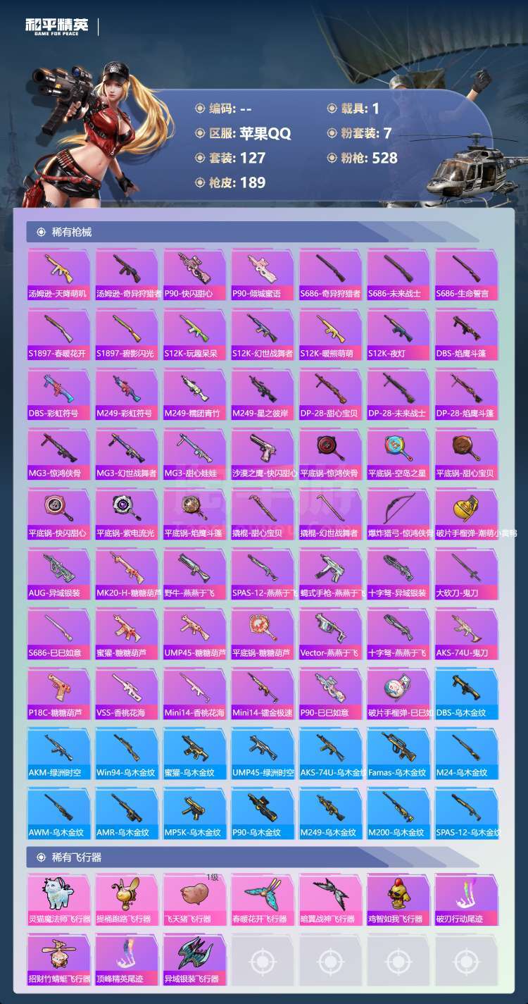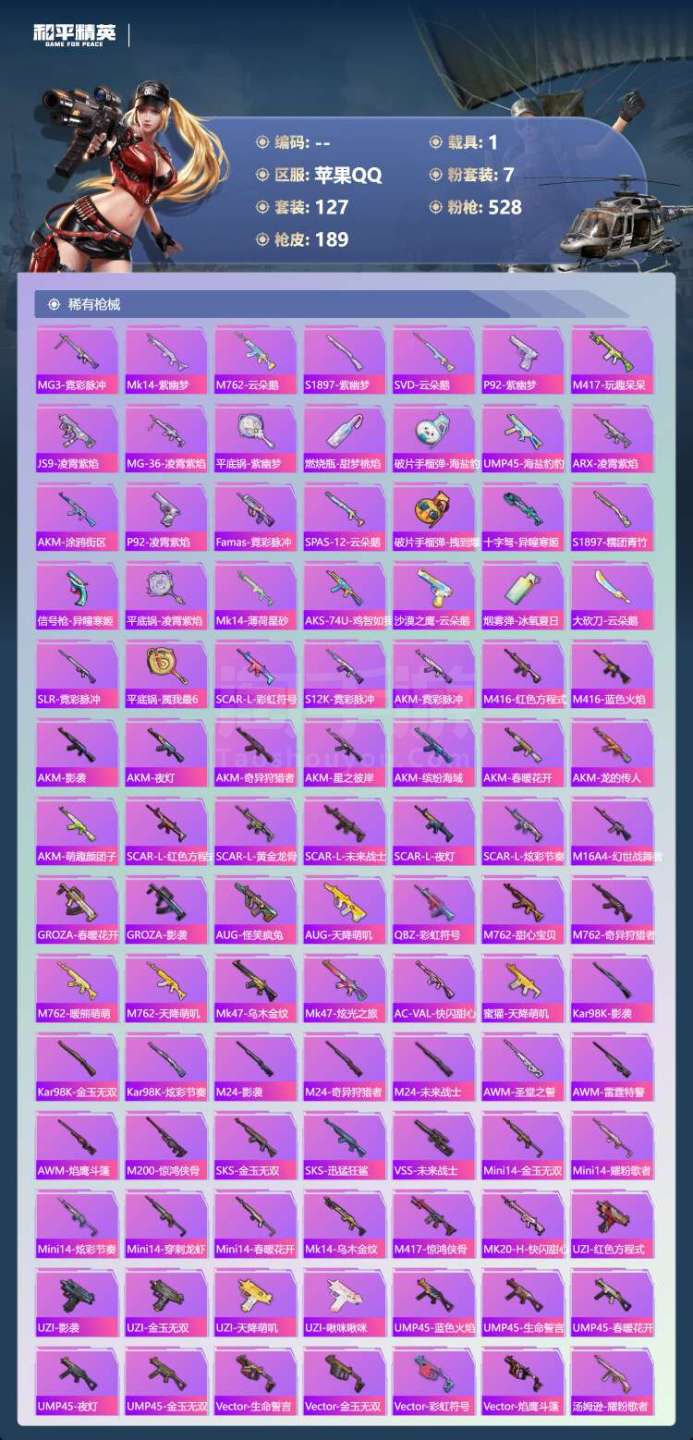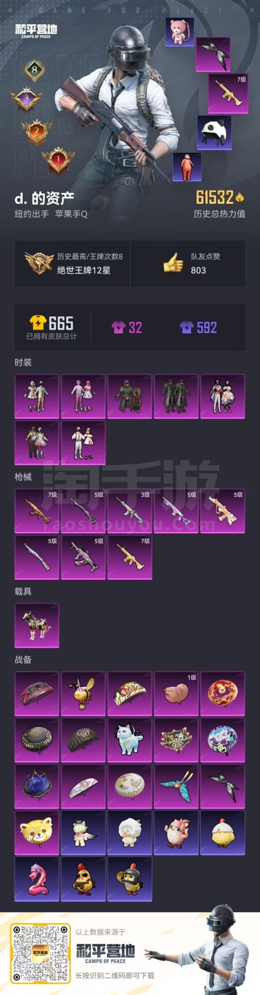 苹果手Q-8王牌印记-7粉装-8特效枪-1载具-61532热力值-127套装-189枪皮-3卓越印记