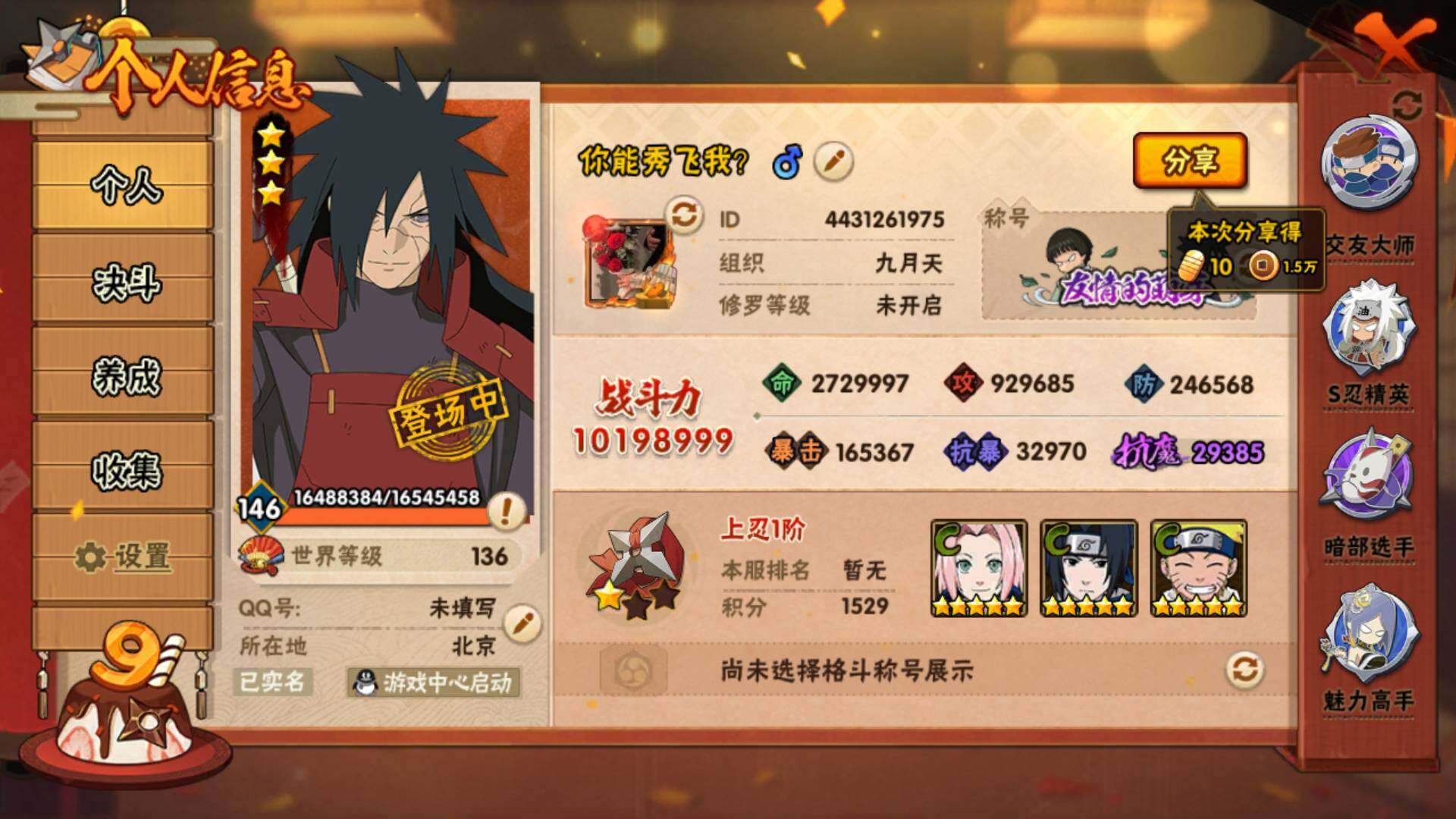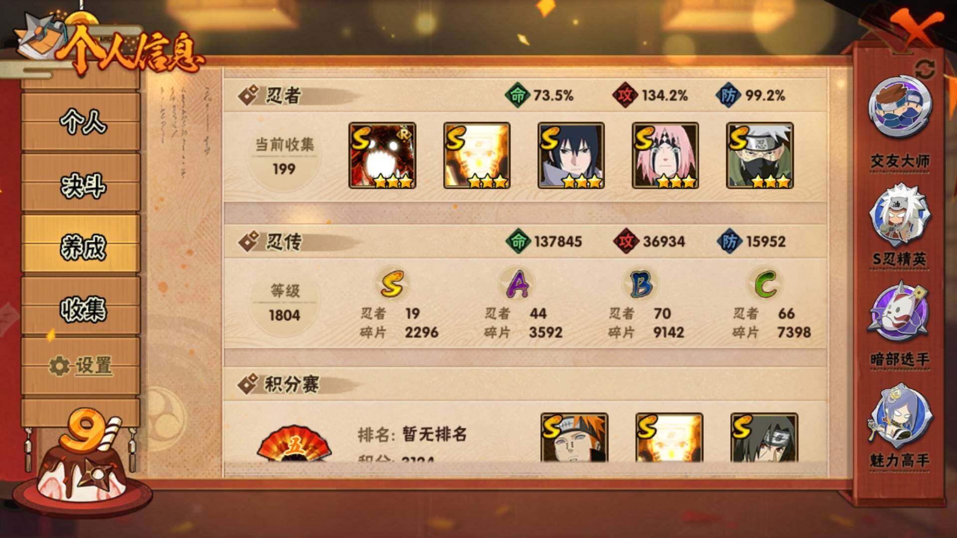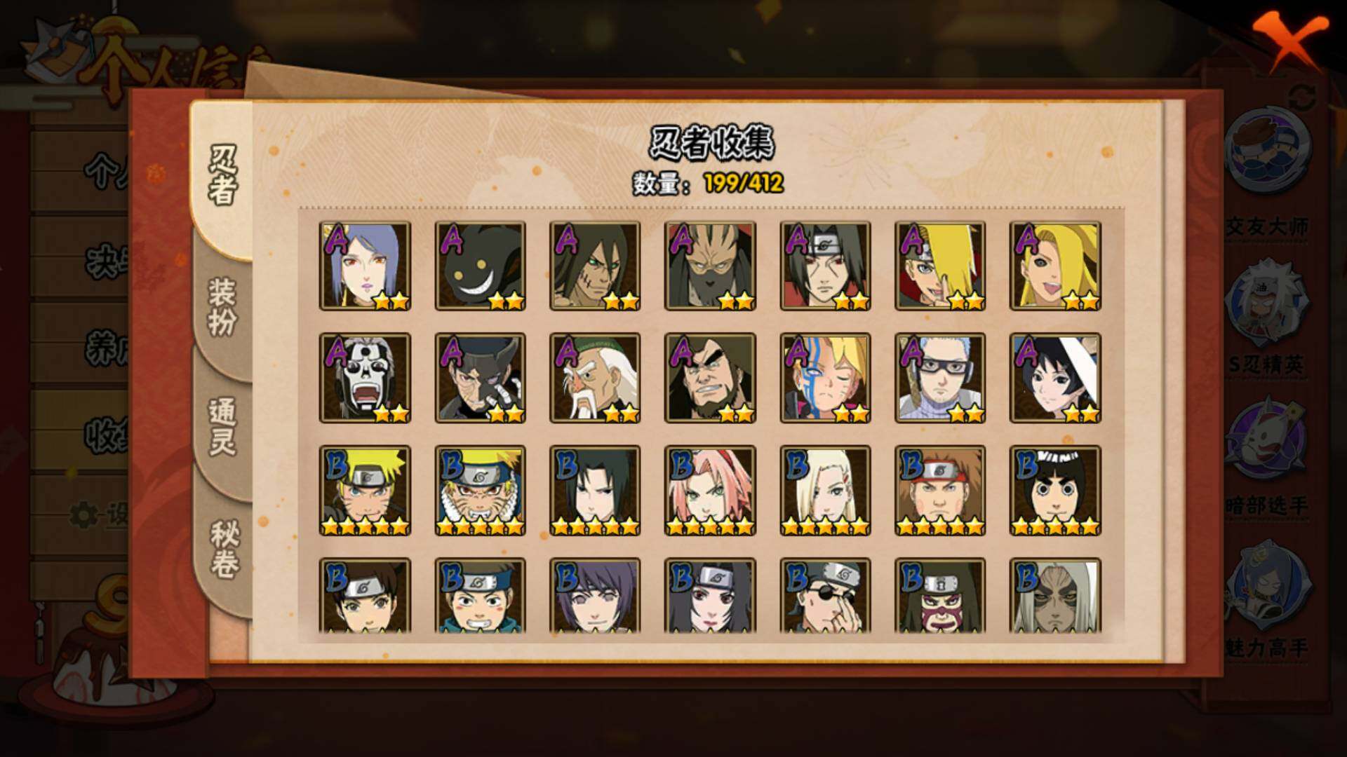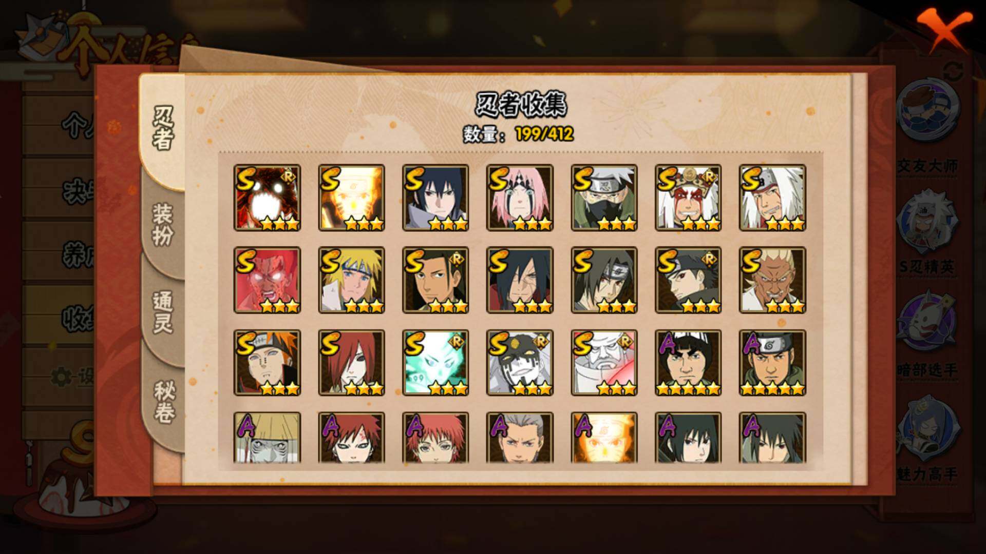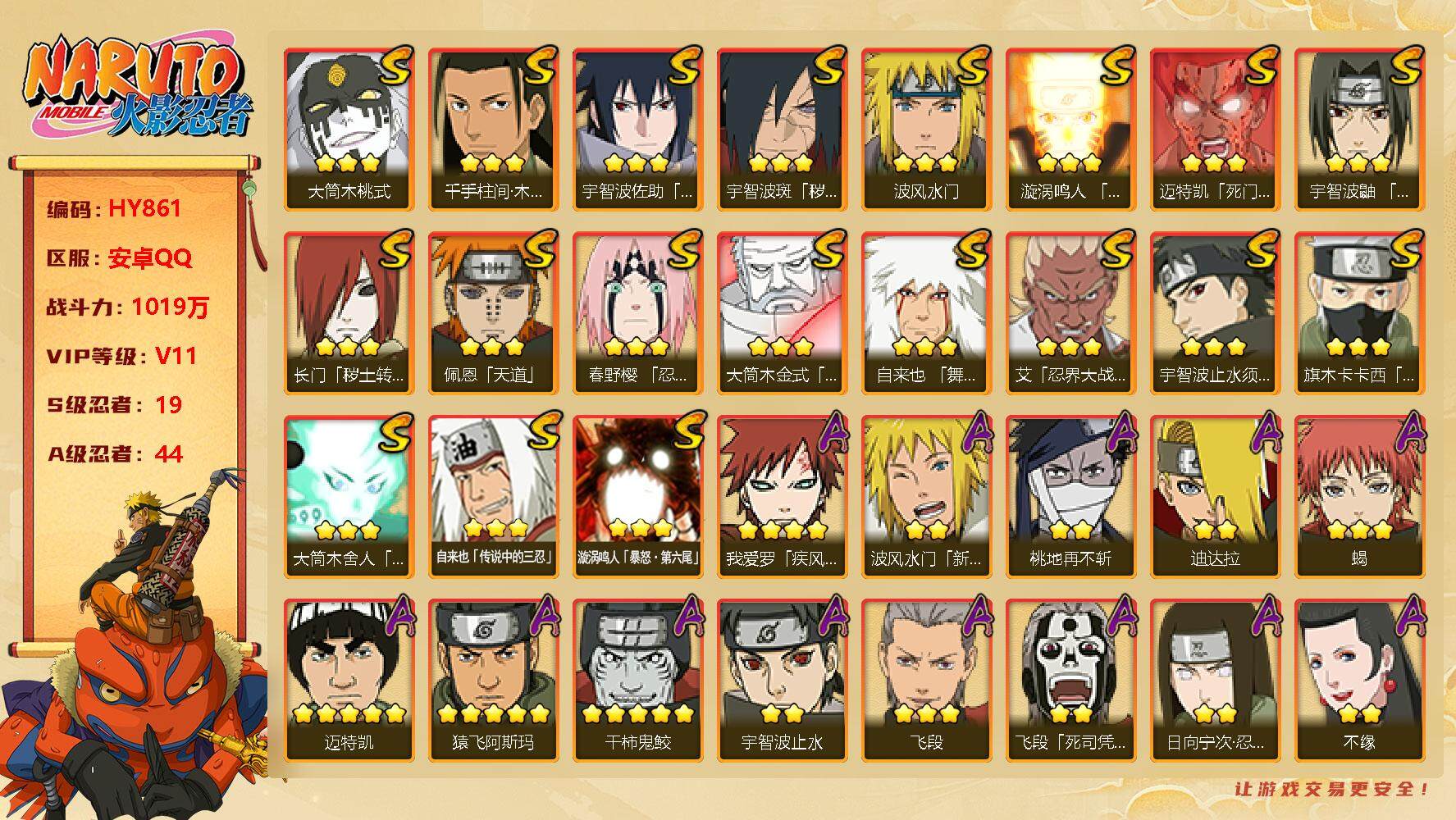 火影忍者【安卓QQ】V11/1019万战力/总忍者199/19S/44A/暴怒六尾/最终章舍人/须