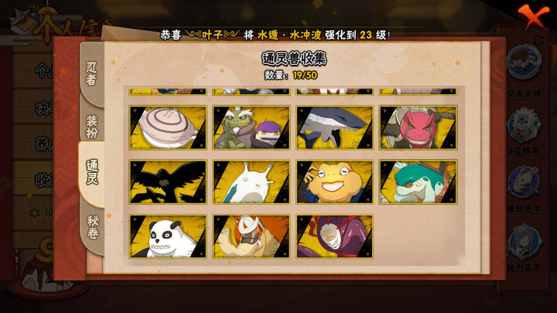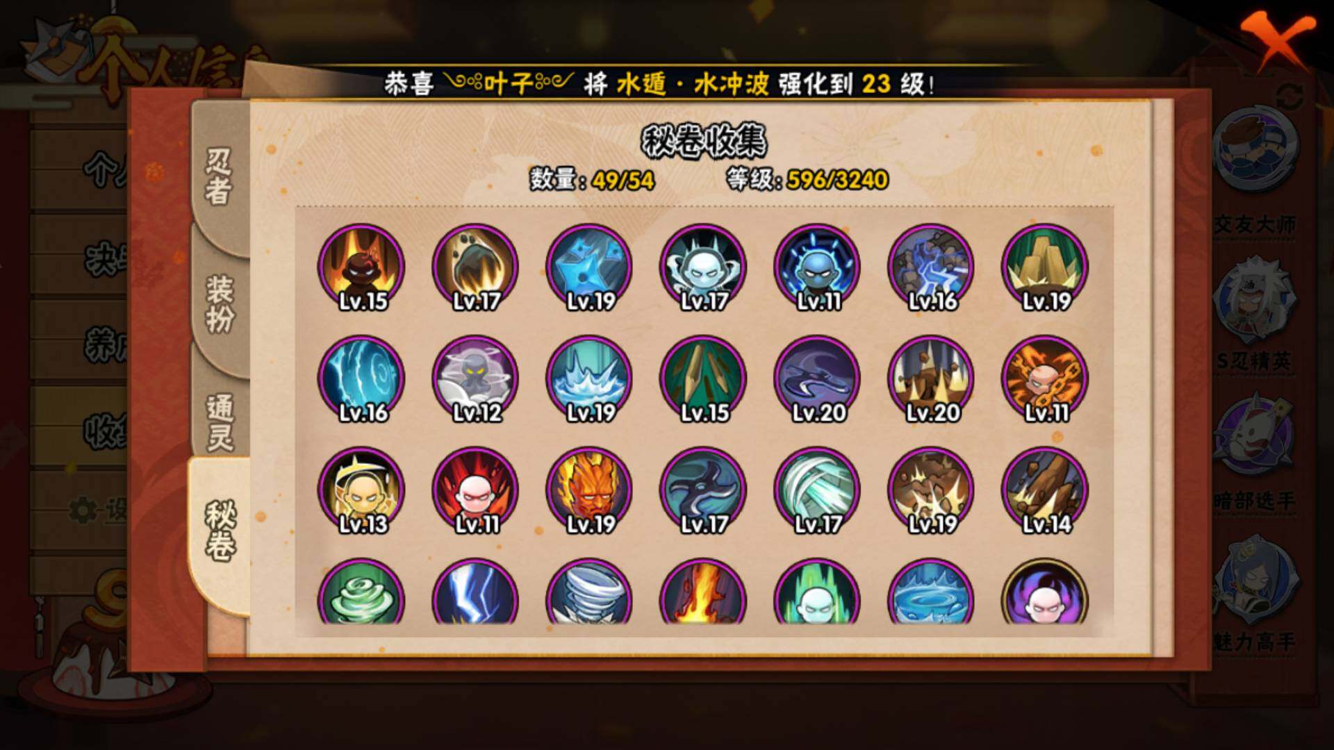 V11/1019万战力/总忍者199/19S/44A/暴怒六尾/最终章舍人/须佐止水/创立柱间/大筒木桃式/大筒木金氏/须佐卡卡西/传说自来也/忍战艾/忍战樱/秽土解斑/秽土长门/九喇嘛鸣人/永恒佐助/死门凯/侠隐大野木/真容卡卡西/新春水门/漂泊六道/漂泊带土/新春小南/泳装小南/黑绝/夏日黑土/秽土再不斩/秽土角都/神农/19通灵/49密卷/408点卷/102高招卷/九喇嘛水门62片/天道超