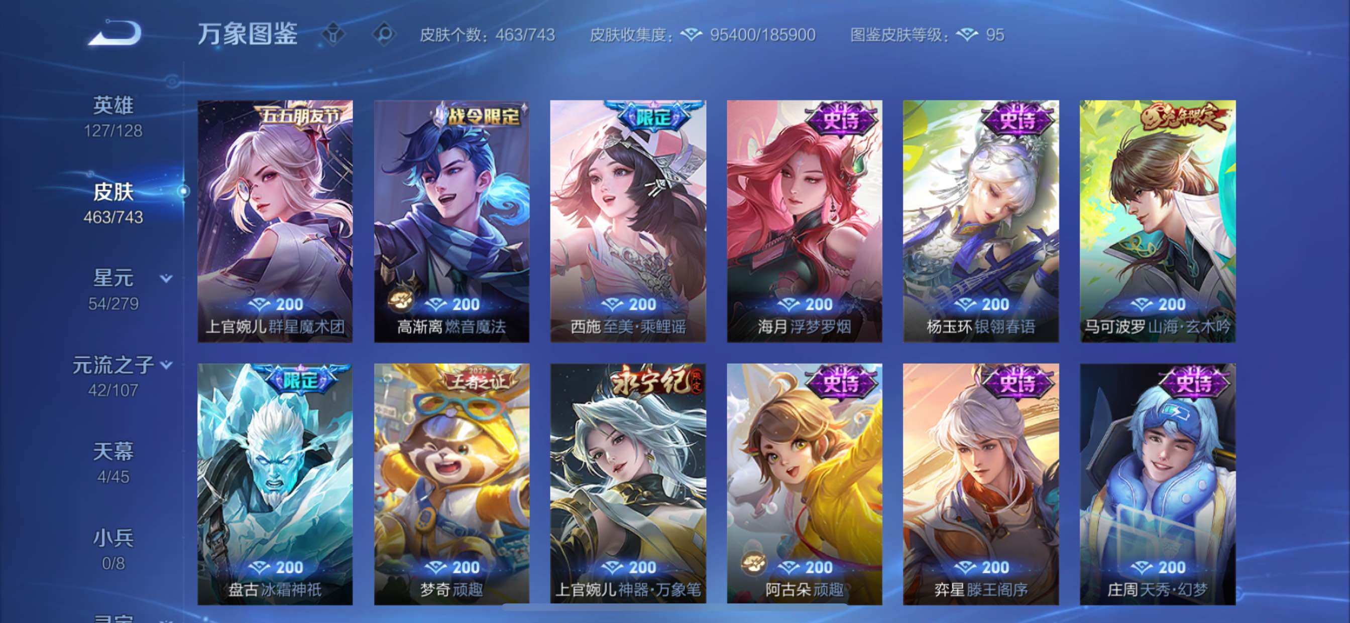 营地账号:40344166/可换绑【V10精品号 贵族积分31万 小国标马可1.2W 4金标 马可全皮 7典藏含武则天英雄 7无双 4珍品 梅西】 86按键 3天幕,3星传说,121戳戳,23王者印记,满级铭文,BX1034,可二次,苹果Q-V10-463皮肤-7典藏-7无双-4珍品传说-60传说-154史诗【英雄全皮】:廉颇全皮,马可波罗全皮,刘邦全皮,云中君全皮,李信全皮,猪八戒全皮,金蝉全