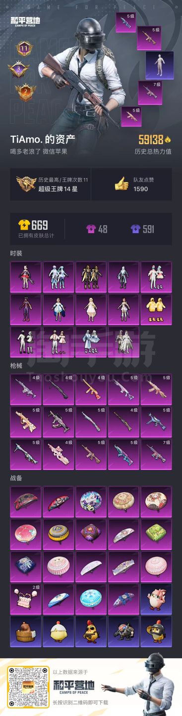 hs47976 苹果微-11王牌印记-14粉装-15特效枪-59138热力值-100套装-174枪