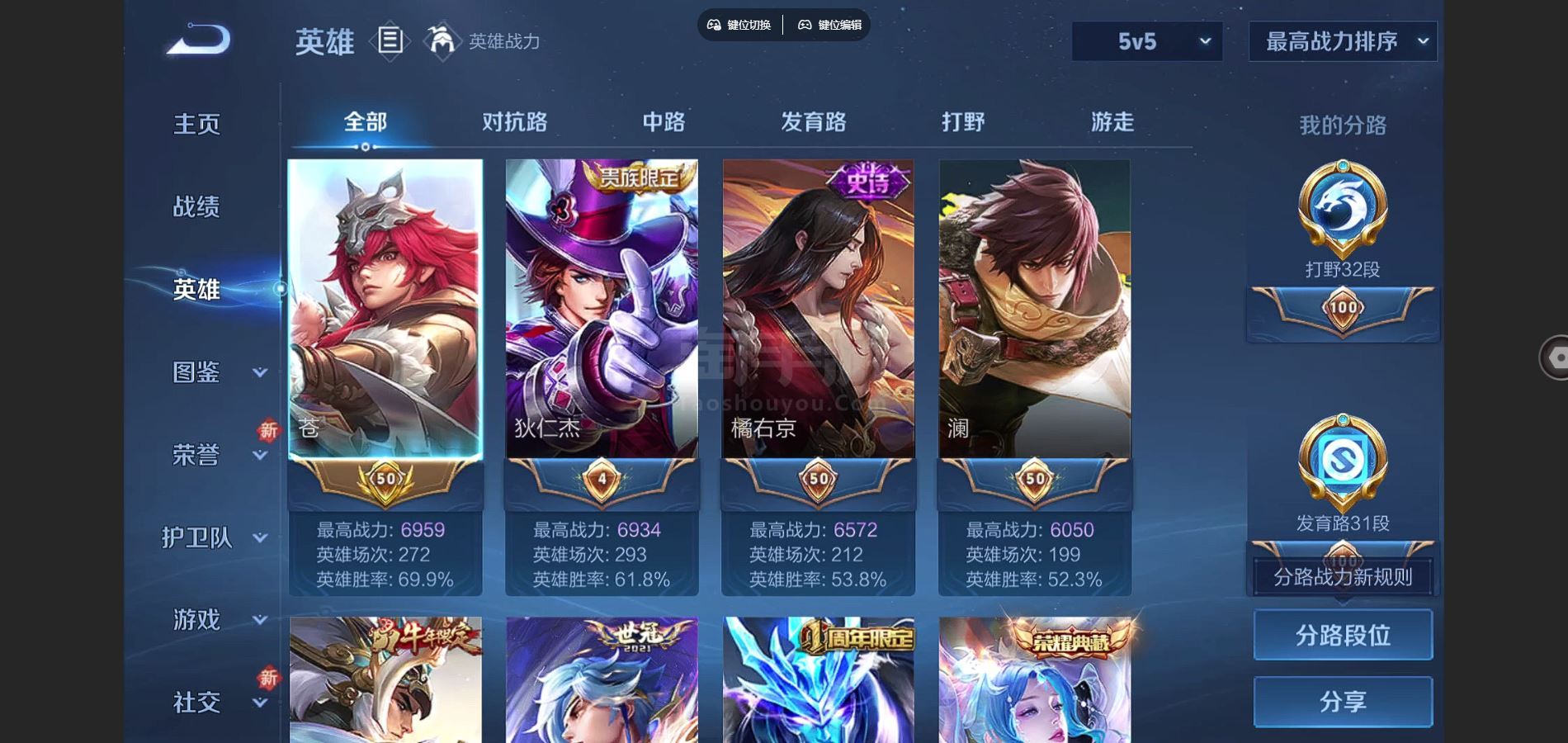 V9-412皮肤3典藏1珍品传说40传说 打野32段 发育路31段 金标苍 7星传说时之思念 幽冥火