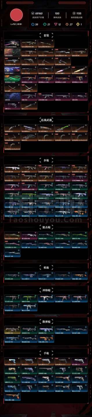 R32111 Lv152 ,皮肤总价值69160,铂金I,总皮肤100,刀皮12枪皮88(终极1传奇