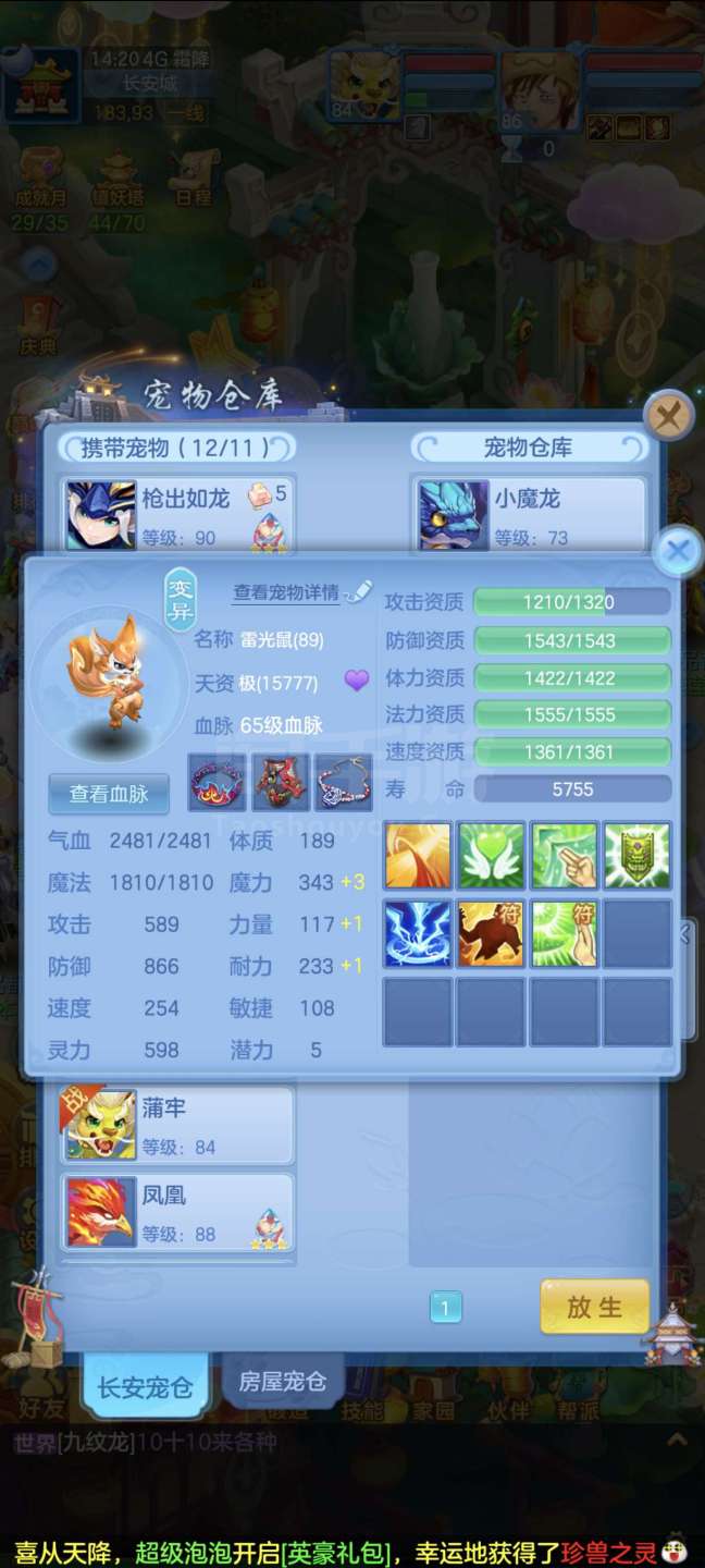 幻唐志:逍遥外传(神武4)【安卓官方】跟等级86级方寸,神兽进修丹1个,78个神兽灵,47个神兽碎片这周可以出内丹,一个玉龙将一年换绑