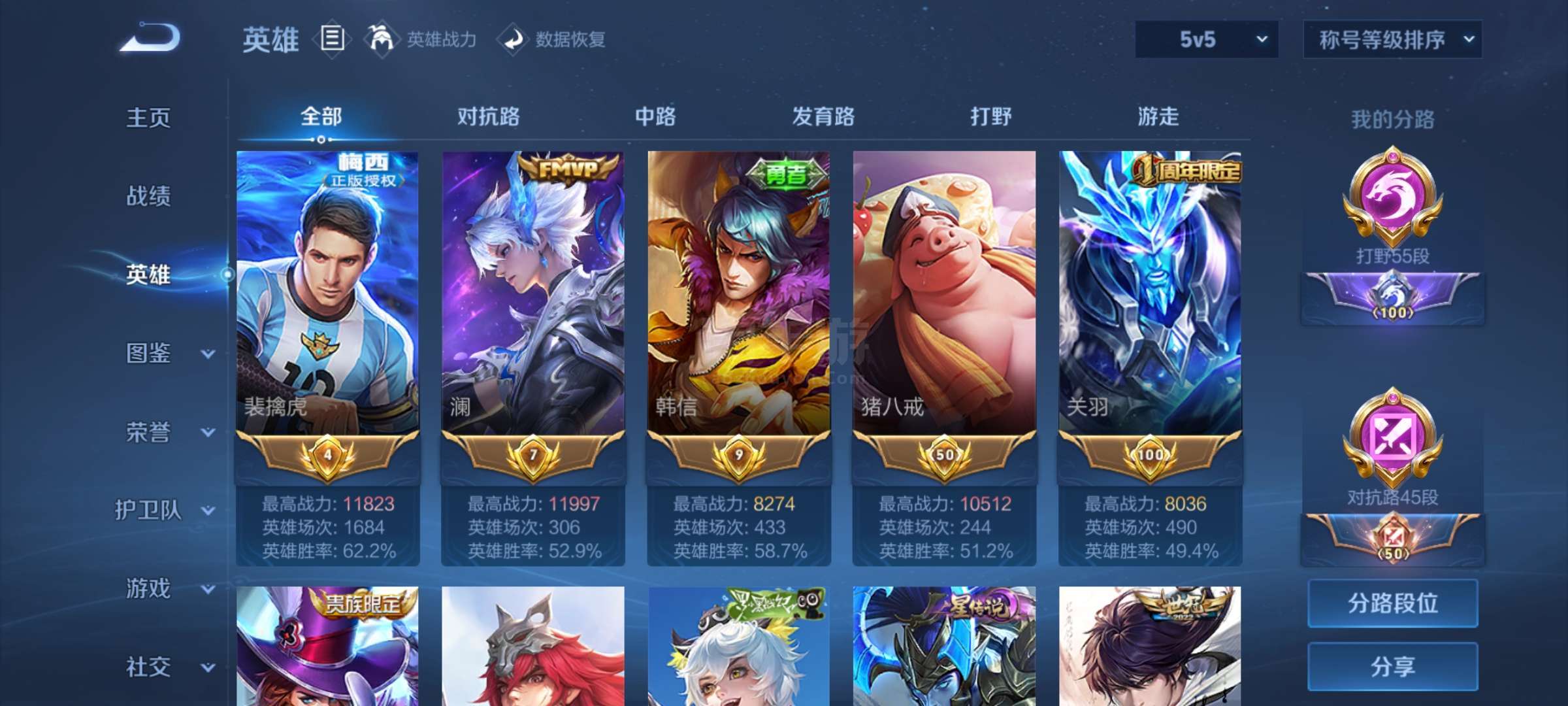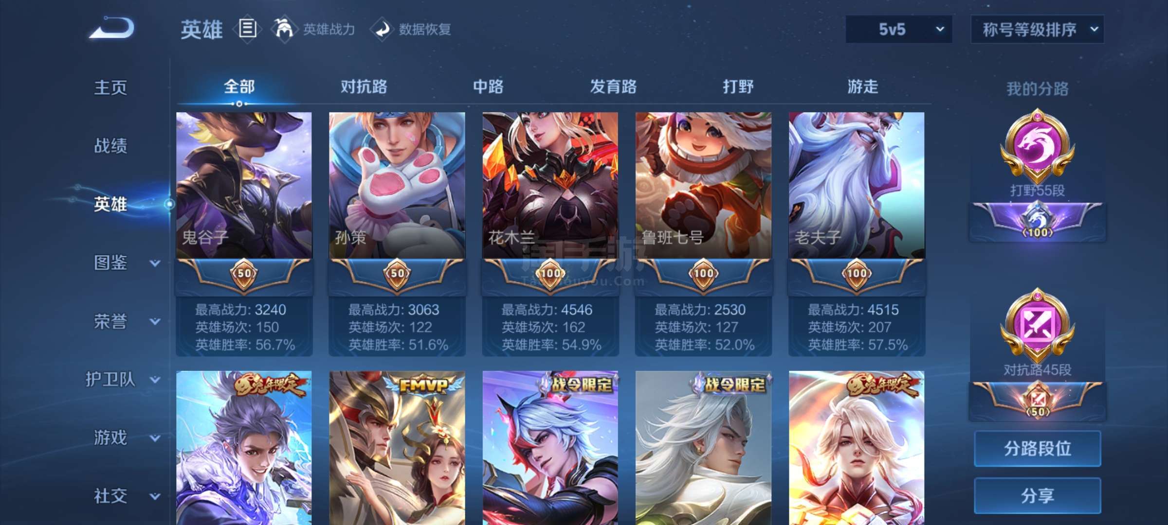 主页巅峰赛小魔方55段打野百星王者印记1.2w战力老虎1.2w战力澜九个金标25王者印记10荣耀印记