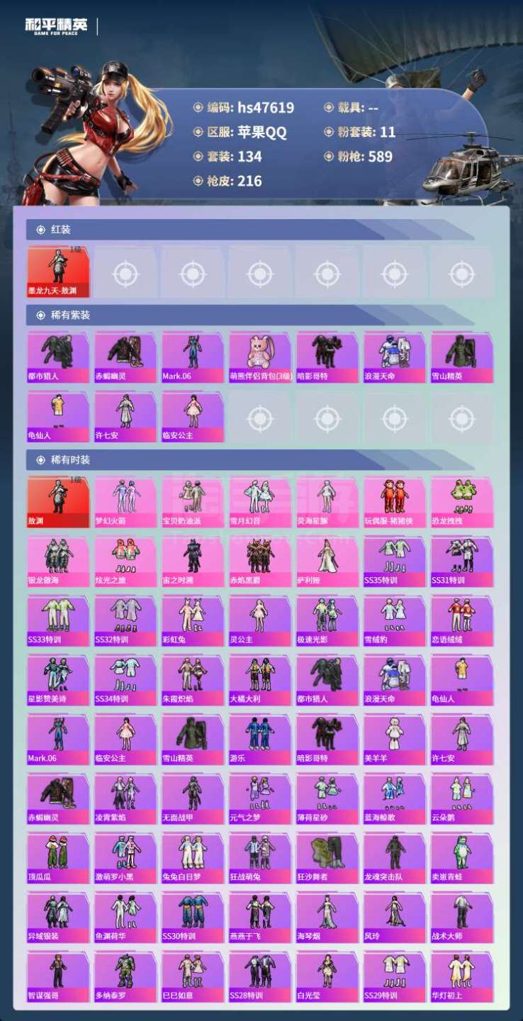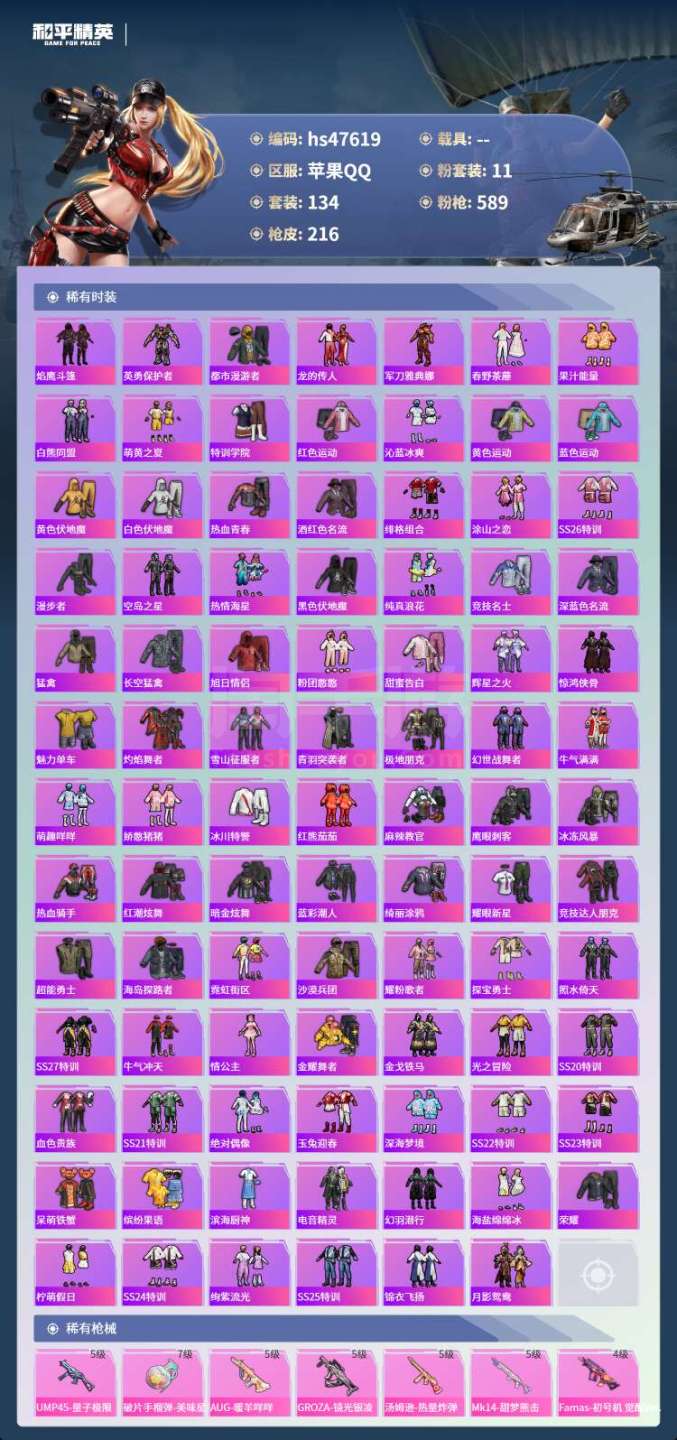 hs47619 苹果手Q-3王牌印记-1红装-11粉装-18特效枪-71823热力值-134套装-2