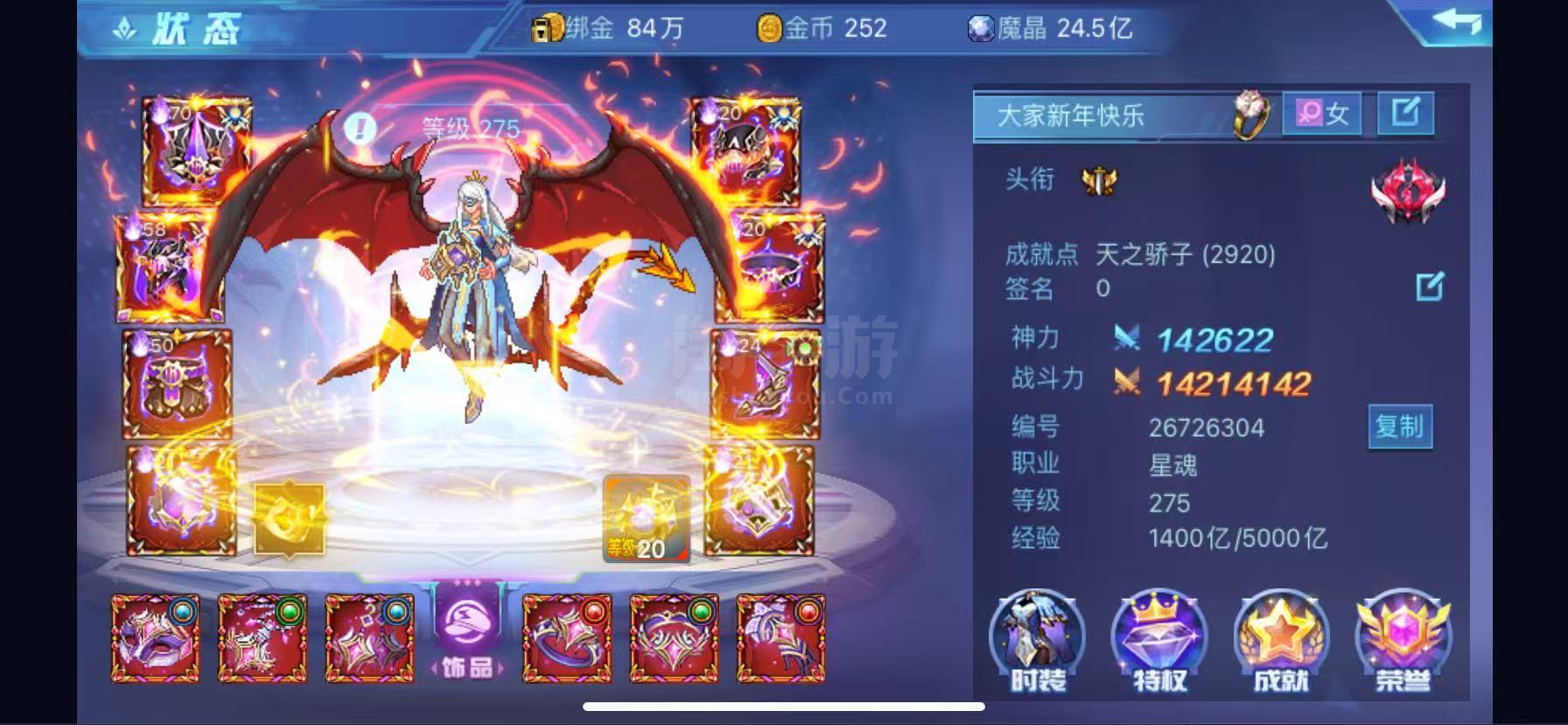 1420万战榜世纪高力雷神号,星魂满战甲觉醒守护破防,带星魂附魔和魔核,战榜前20,两个宝宝,全机甲,强力角色有烬灭骑士,冰凌,双子,云峦,VIP24级,2个满级光环,8个拖尾,野火立场,苹果国服可换绑