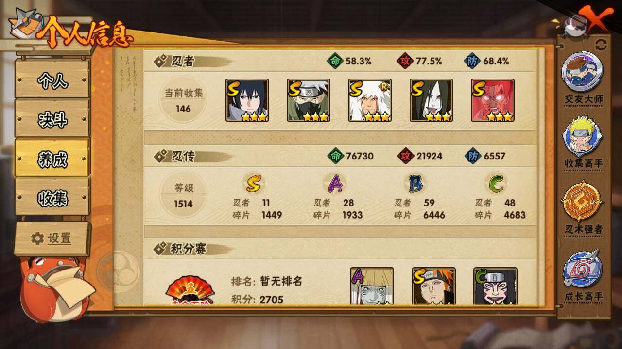 V8 511万战力 11S级忍者数-27A级忍者数 木叶创立斑50片 忍战大野