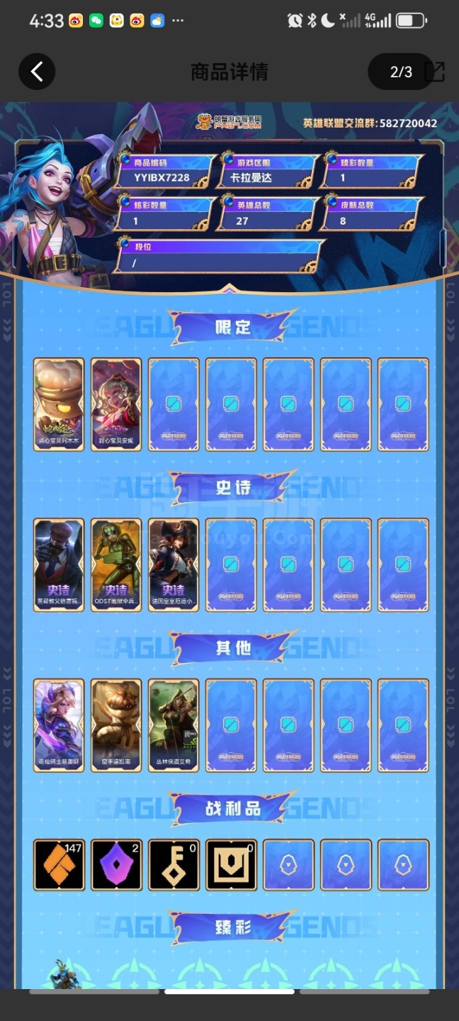 英雄联盟【端游】极品限定号,多史诗级限定皮肤