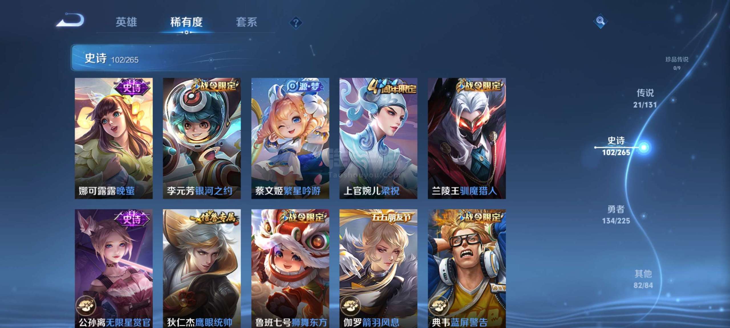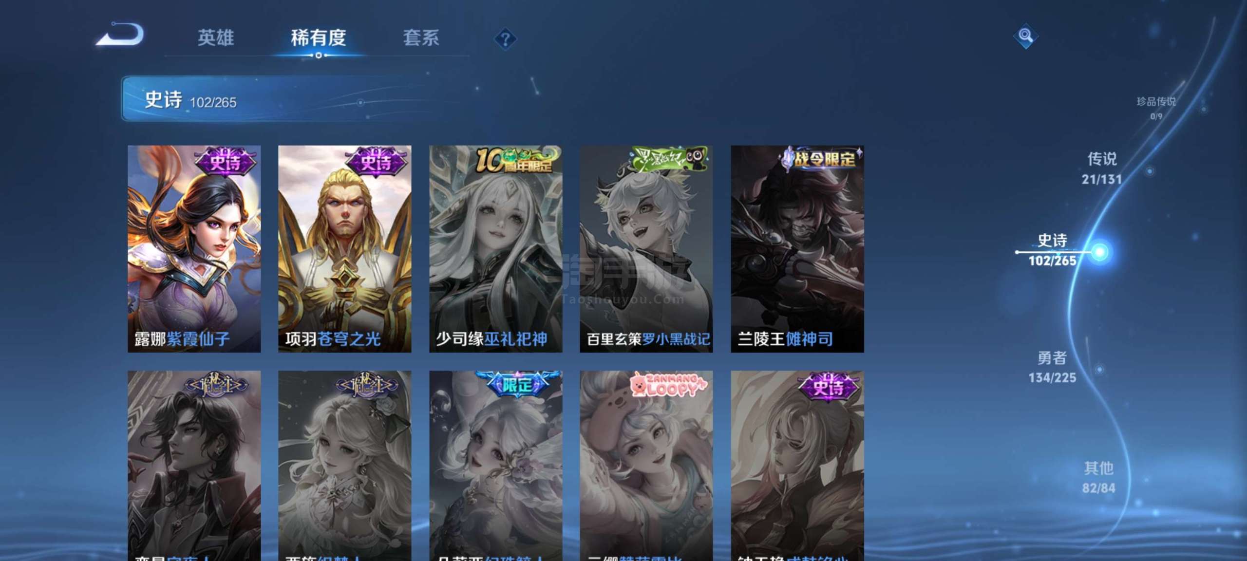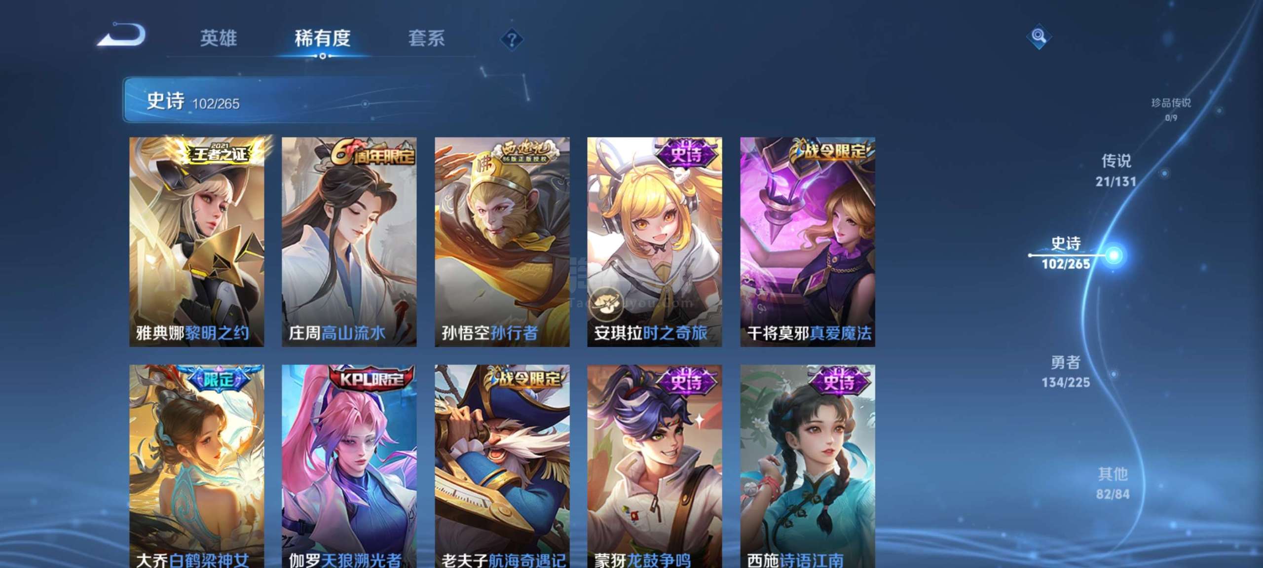 王者荣耀【安卓QQ】6典藏,21传说,102史诗,好的史诗很多