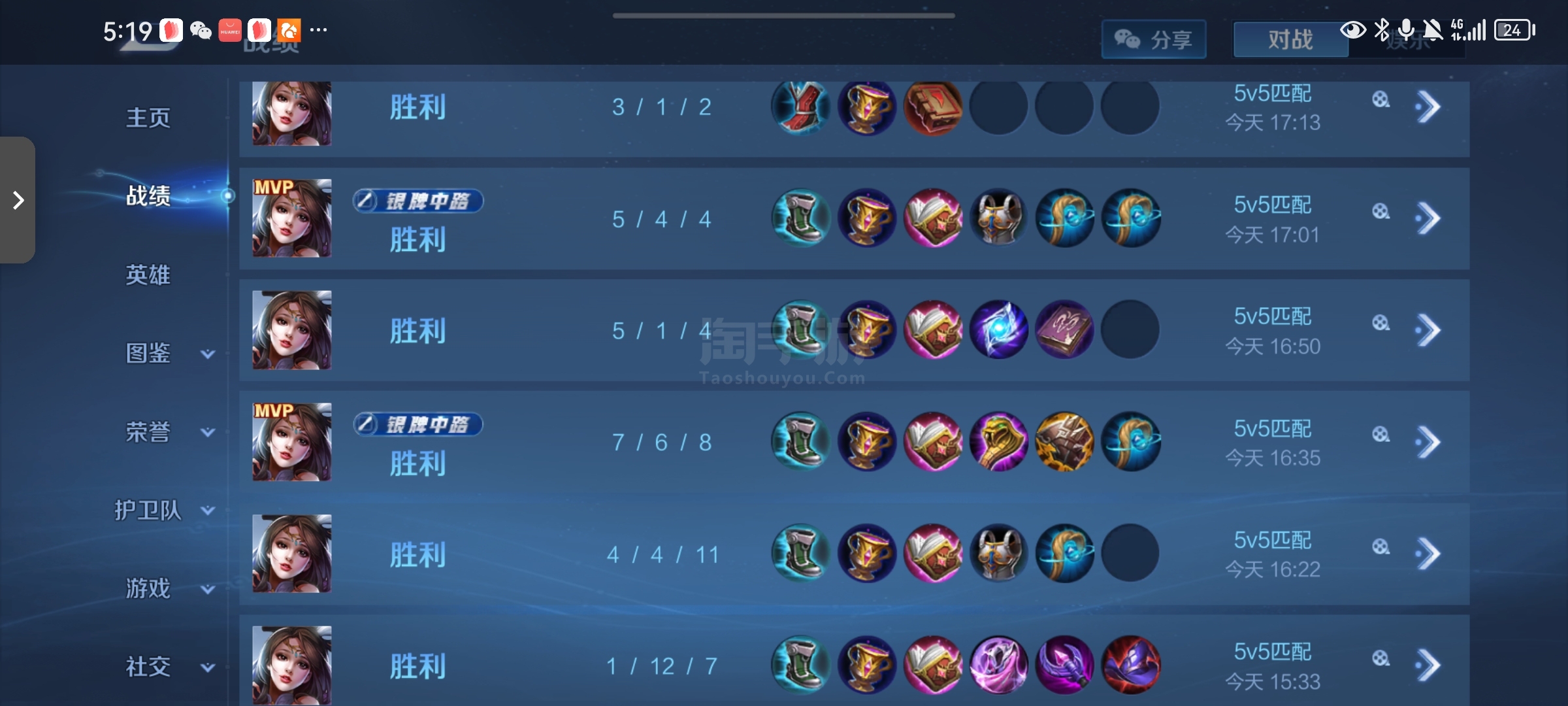 王者荣耀【安卓QQ】两颗星小号刷匹配胜率专用