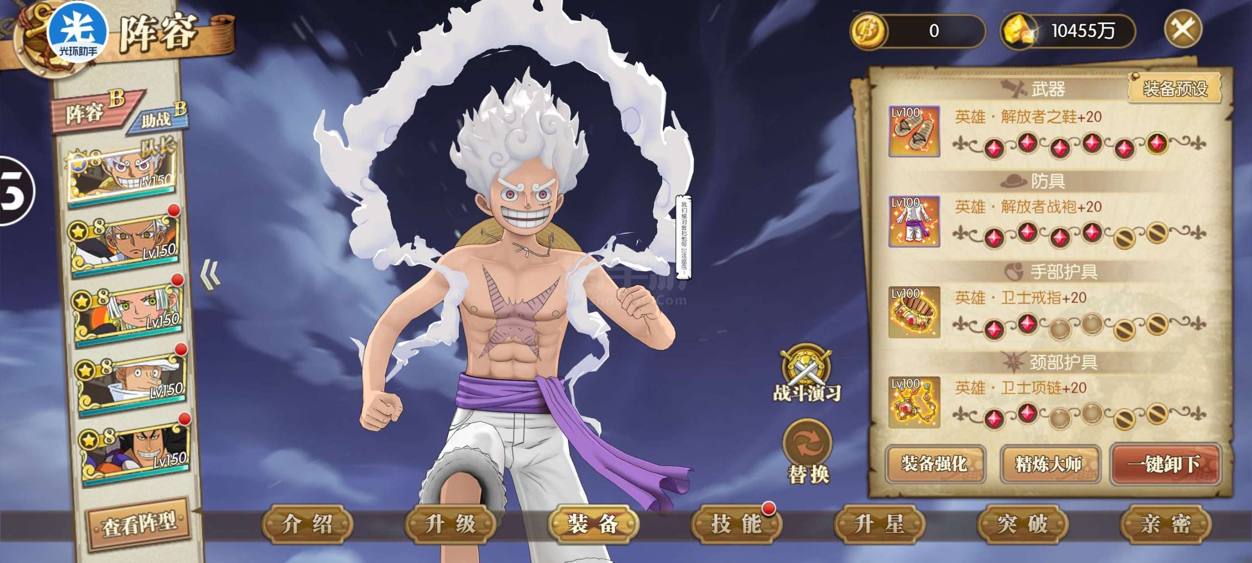 航海王:燃烧意志【安卓360】八星UR尼卡三件专属装备,八星S小女帝、八星S小鹰眼背包2000强者卷100UR卷子五级阵龙凯助威八